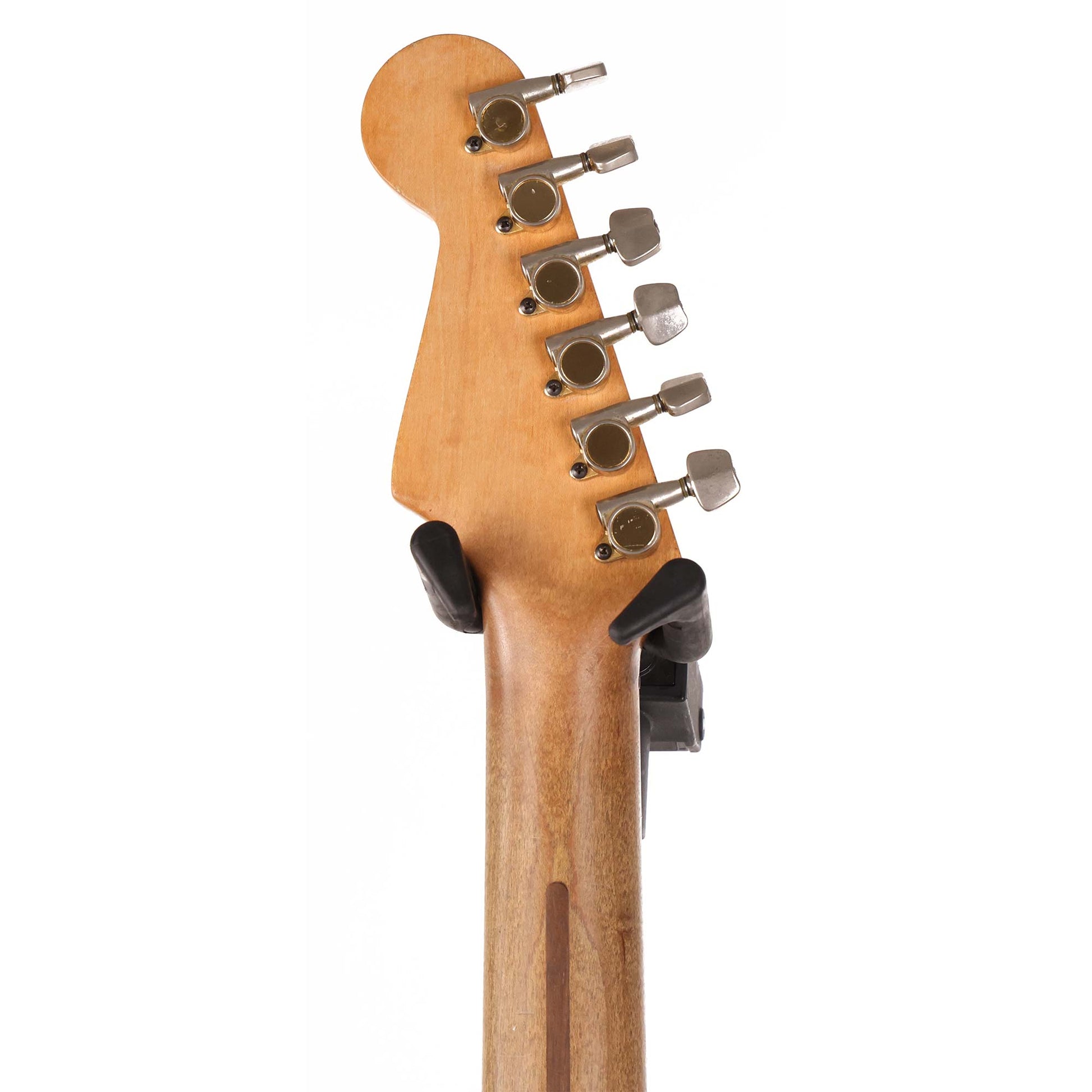 Put this guitar on the list of things we'll likely never see again! This is a 1980-1981 Charvel Star with butcher block construction, which was part of the early 'pre-production' days of the soon to be legendary company. The guitar features a 21 fret rosewood board with a 43mm nut width to a bolt-on maple neck and a very cool 'key-hole' saddle brass tremolo bridge. The neck pickup looks to be an original DiMarzio humbucker, but the bridge pickup is a double-cream Seymour Duncan humbucker. With its double-cream bobbins, this is likely an older Duncan pickup before DiMarzio received the double-cream bobbin trademark. The guitar has scuffing and finish swirling throughout the body. The frets are original and have heavy wear, we would recommend a refret however this is left up to the discretion of the next owner. It's an incredibly rare piece that's sure to be a center point of any vintage Charvel collection. It includes the original case and tremolo arm.
