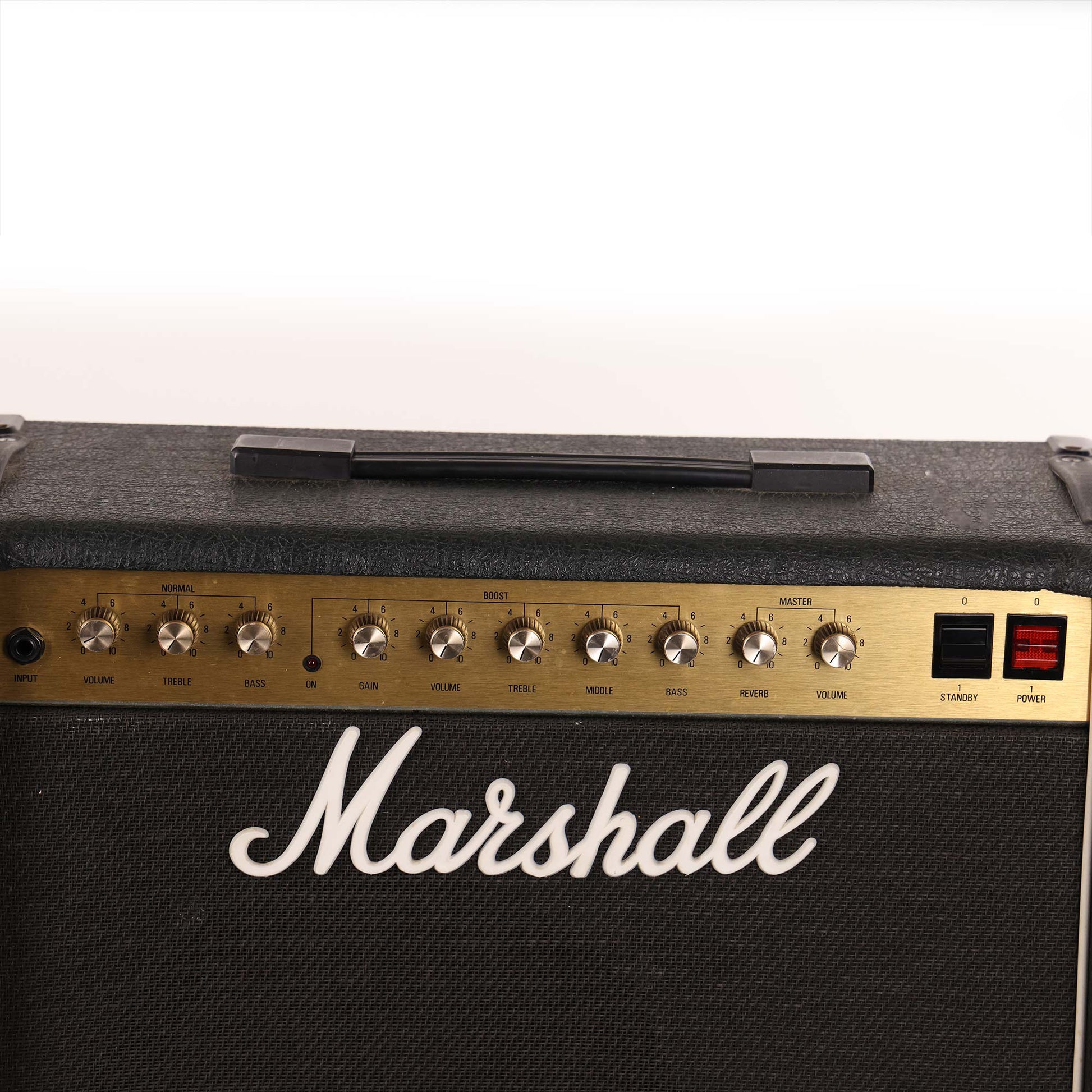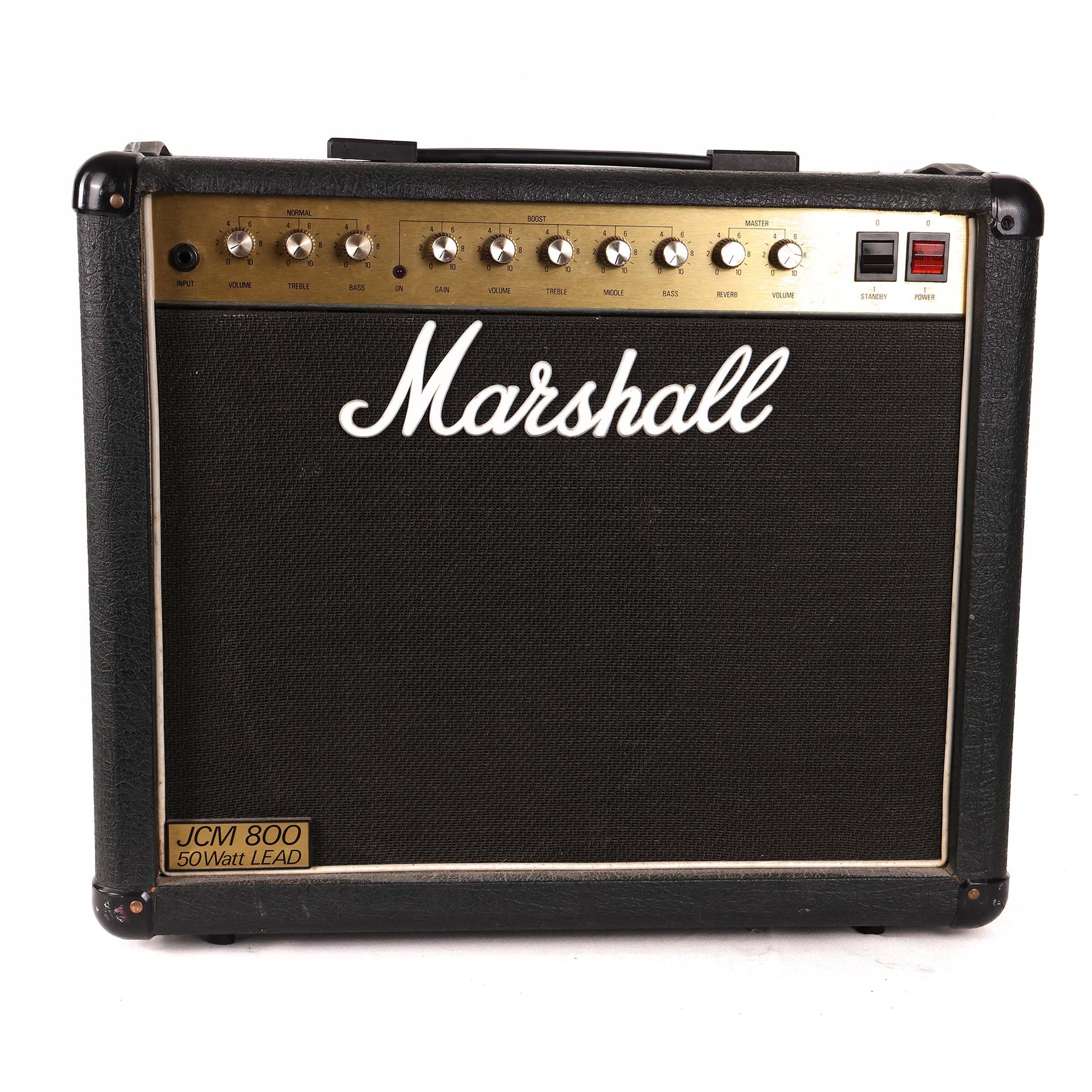 A powerhouse Marshall amplifier perfect for those situations where you need volume but not a full stack! This is a 1985 Marshall JCM 800 Lead Series, the model 4210 1x12" rated at 50 watts. The amp has onboard reverb and a footswitch to go between the two channels and reverb. It's fully functional and sounds excellent. A sticker on the back panel shows that it was serviced at Fuchs amplifiers in 2019. The amp is sold for local pickup only due to its weight!