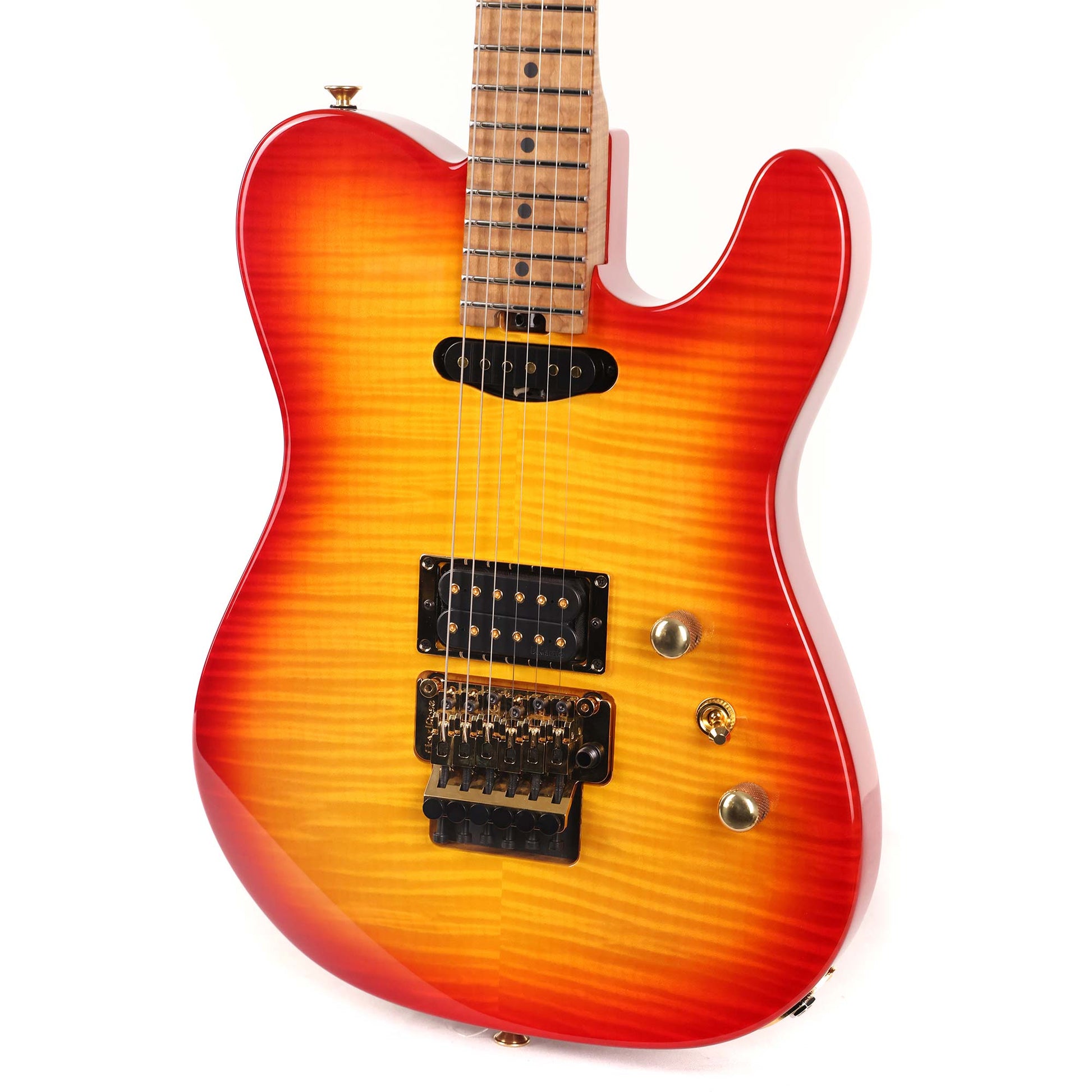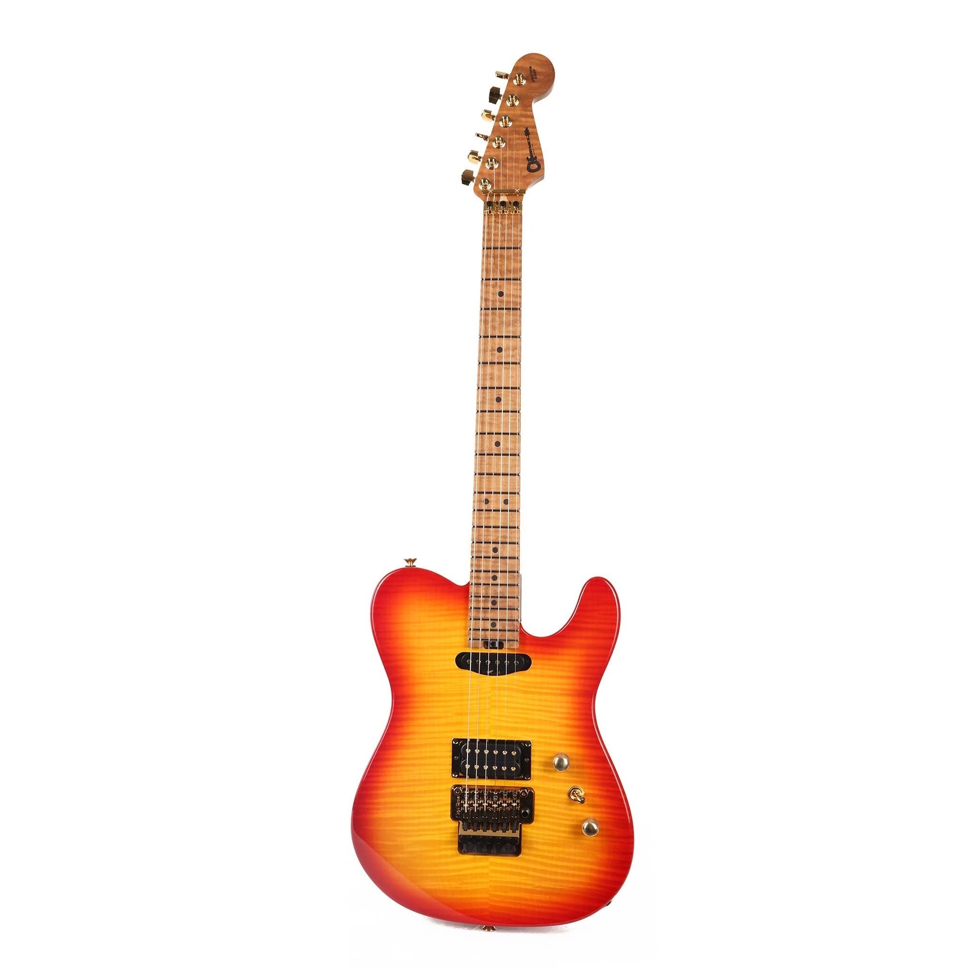 Here's one that commands attention: a Charvel Custom Shop Style 2 outfitted with a flame maple top finished in Aged Cherry Burst and gold hardware for added flair. The guitar also features an ash body, single-piece roasted flame maple neck with jumbo stainless steel frets and Luminlay side dots to light your way on stage. For pickups: DiMarzios True Velvet in the neck position with a PAF Pro in the bridge to provide the sound. It's a hot-rod of a guitar that looks great and plays like butter, pick it up now and don't miss out!