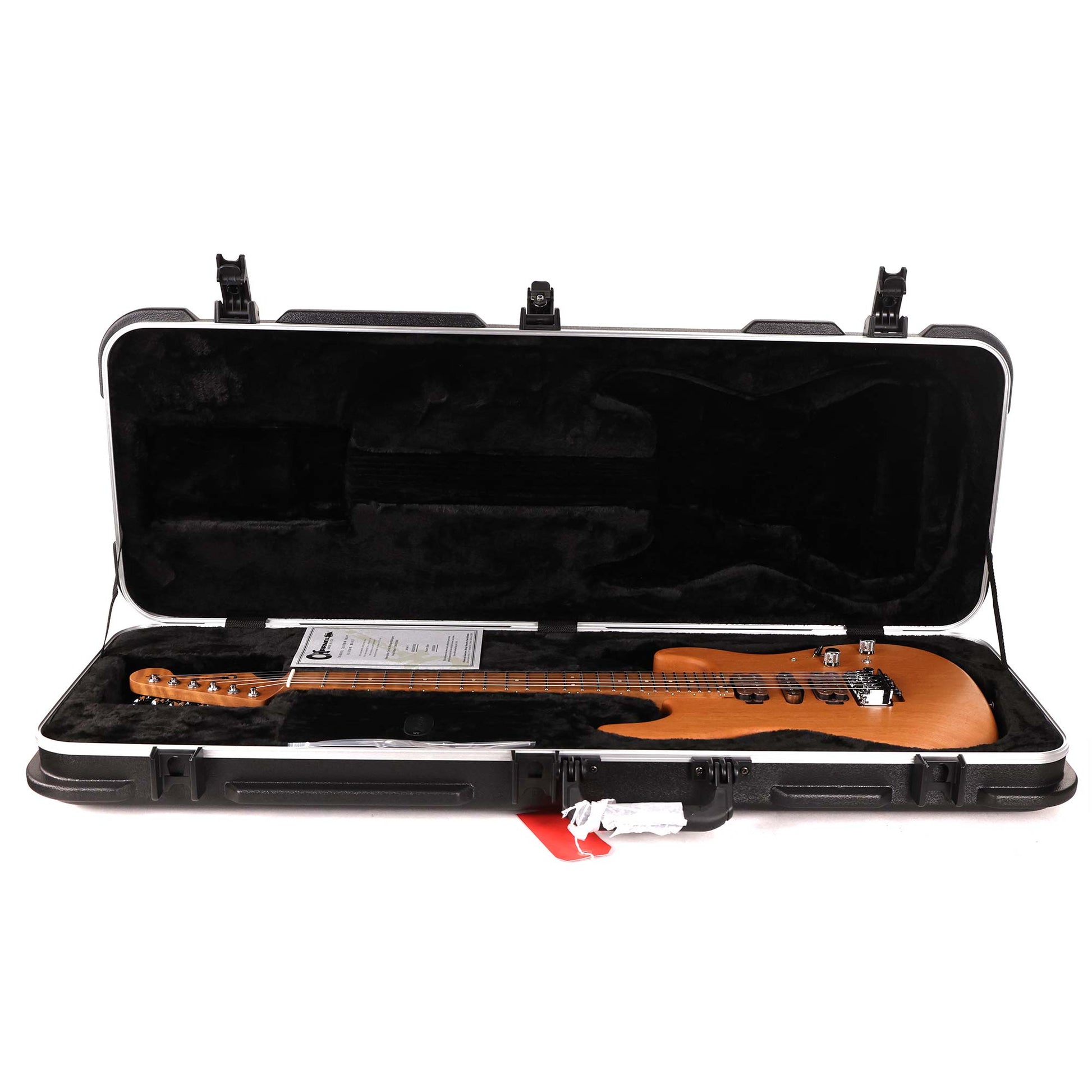 Fast forward to 2024, and when we got word that Fender had a stockpile of mahogany from an old factory that used to be in Kalamazoo (yes, that one), we wanted to make some magic happen with that mahogany. This wood is at least 50-70 years old, so if you do the math - you know that some pretty killer guitars were made using this mahogany in that city back in the day! The guitar retains all of the shred-tastic specs of the Guthrie model including stainless steel frets, custom-wound pickups, the recessed tremolo and luminlay dots and knobs...the works - all with the midrange honk and rawness of a mahogany body. All wrapped up in a natural matte finish, this guitar is a wood-appreciators dream. Make one yours today!