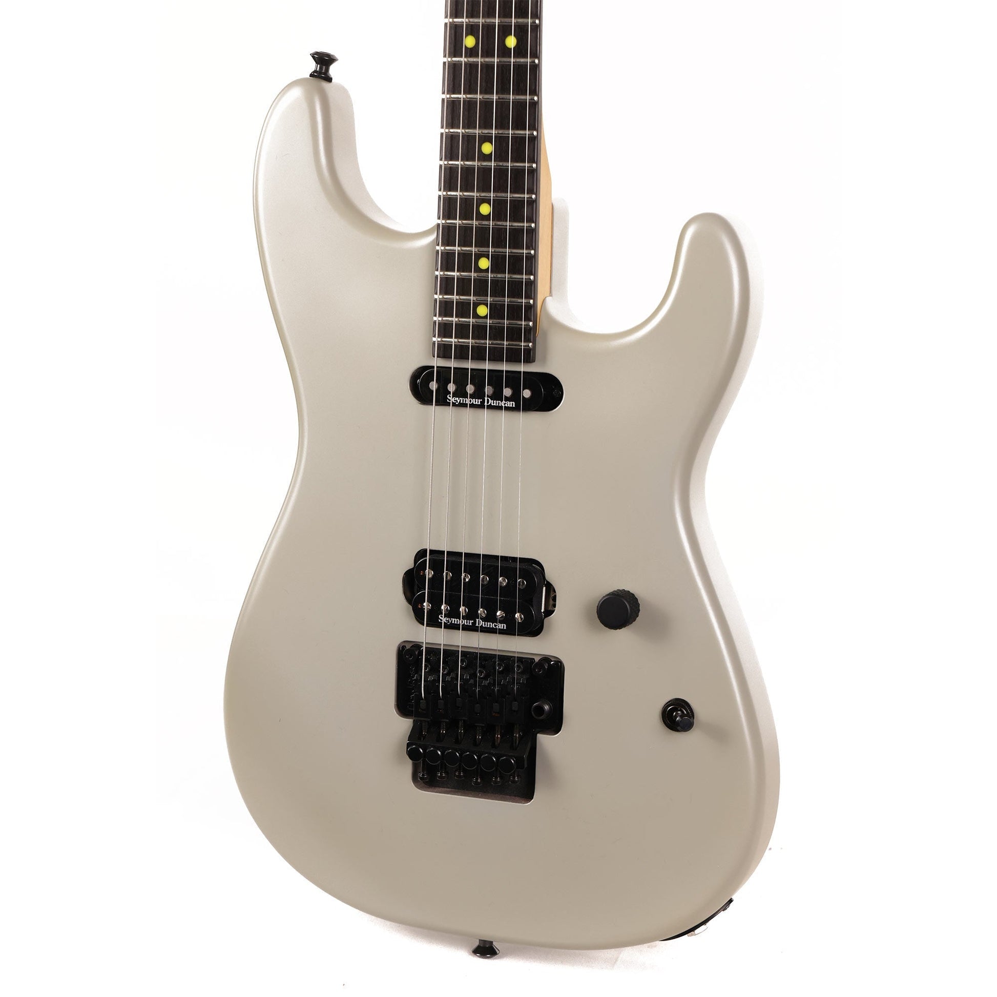 This is a lightly used and still in overall very good to excellent shape Charvel Pro-Mod Wild Card #7 model in Primer Scream, built in 2011. The guitar features a quartersawn maple neck, 22-fret ebony board and Seymour Duncan pickups! You have a STK-1 single-coil in the neck and a JB in the bridge position. There are two small lacquer cracks on the sides of the neck pocket - other than that the guitar is still very clean!