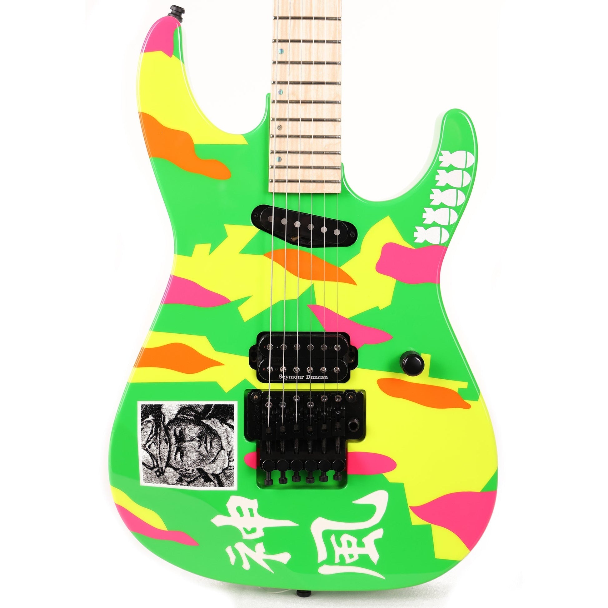 Here's a shredder built for the pros! This is an ESP George Lynch signature Kamikaze 4 model, built in Japan. The guitar is crafted of a maple body with maple neck, extra jumbo frets, and a Duncan TB-12 bridge humbucker for screaming lead tones!