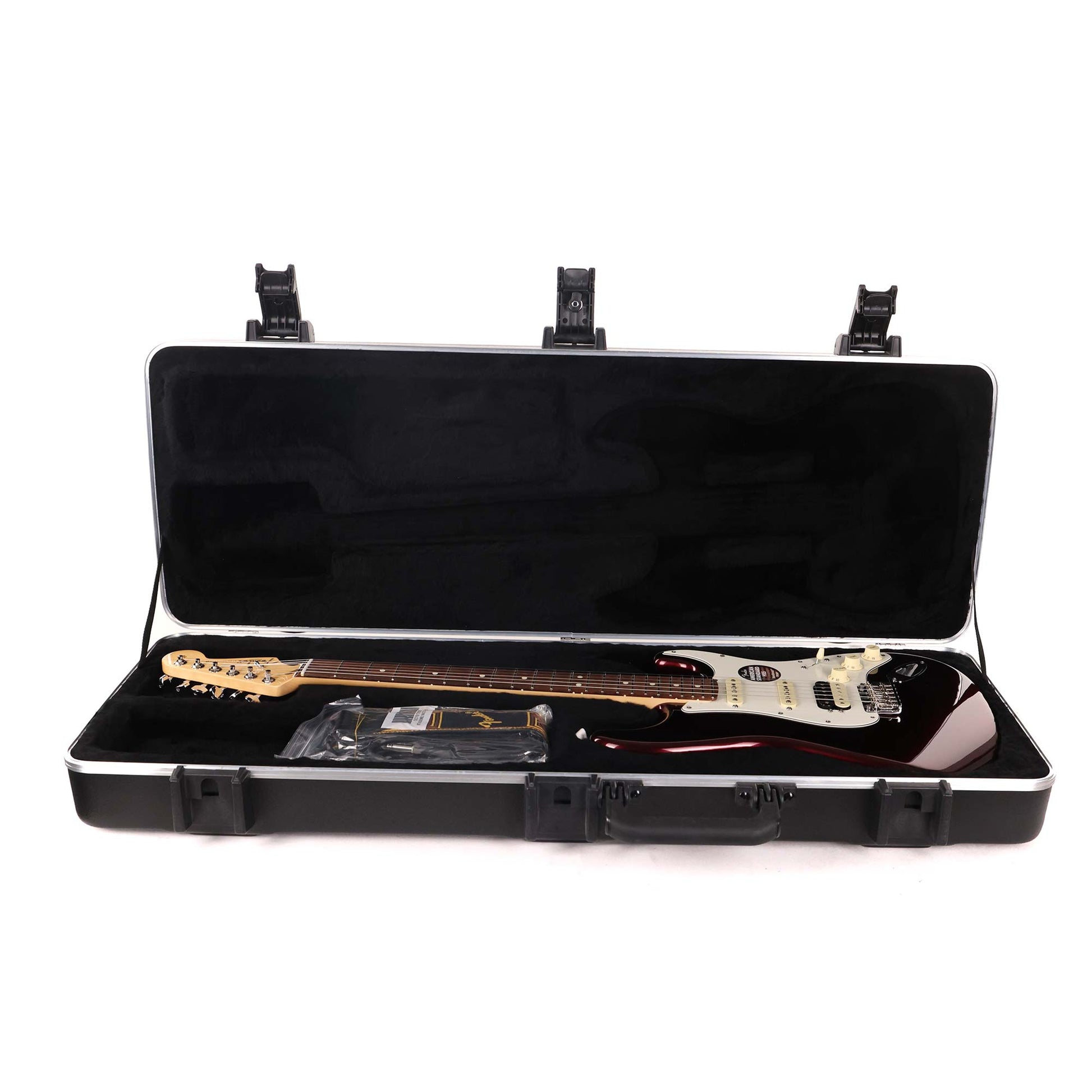 Add American Standard Stratocasters to the list of things that will last until the end of time, right next to Twinkies. This is an 2015 American Standard HSS Shawbucker model with a Bordeaux Metallic finish and rosewood board still in excellent condition - the protective sticker is still over the tremolo arm screw hole! The original case is included with this one. The model is made even more forceful by the added innovation of a dual 250K/500K volume potentiometer, which optimizes the tonality of each pickup switch setting by automatically running the Shawbucker bridge pickup at 500K for greater openness and brilliance, while the neck and middle pickups run at 250K for spine-tingling single-coil sparkle - a helpful feature to make it an even more versatile workhorse guitar!