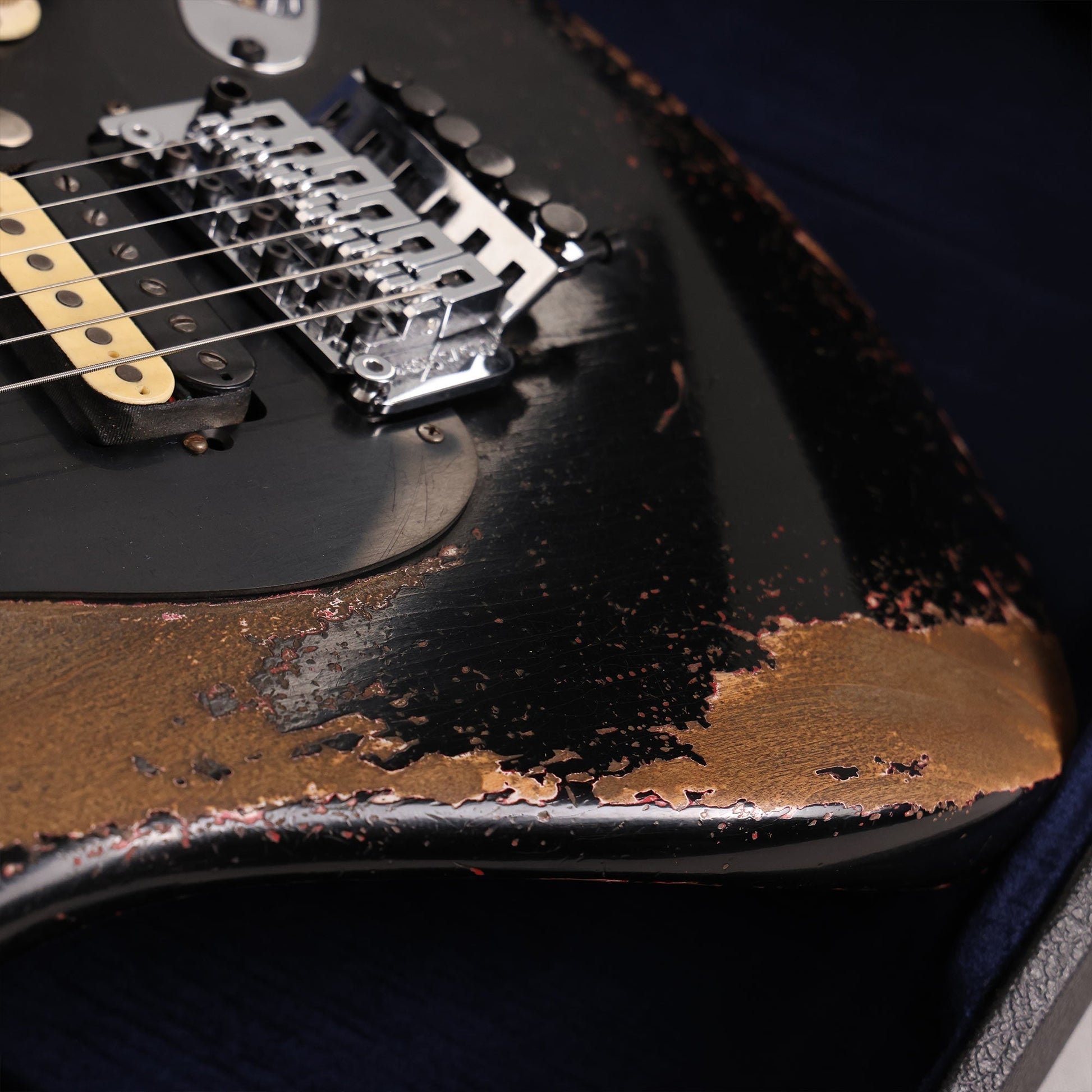 Another Music Zoo Hacksaw Relic knocked out of the park by Andy Hicks! Taking the platform of a '57 Strat (or what would be left of it), we asked for the guitar to be turned into a modified Hard Rock machine with a Super Faded Aged Black finish, compound 9.5-12" fretboard radius, and a Smokehouse humbucker from Sonic Pickups! A special little touch from Andy is the fun little skull head used as the switch top! It's the little things like that which make a Masterbuilt guitar unlike any other. Make this one yours fast and be the coolest guitarist on the block.