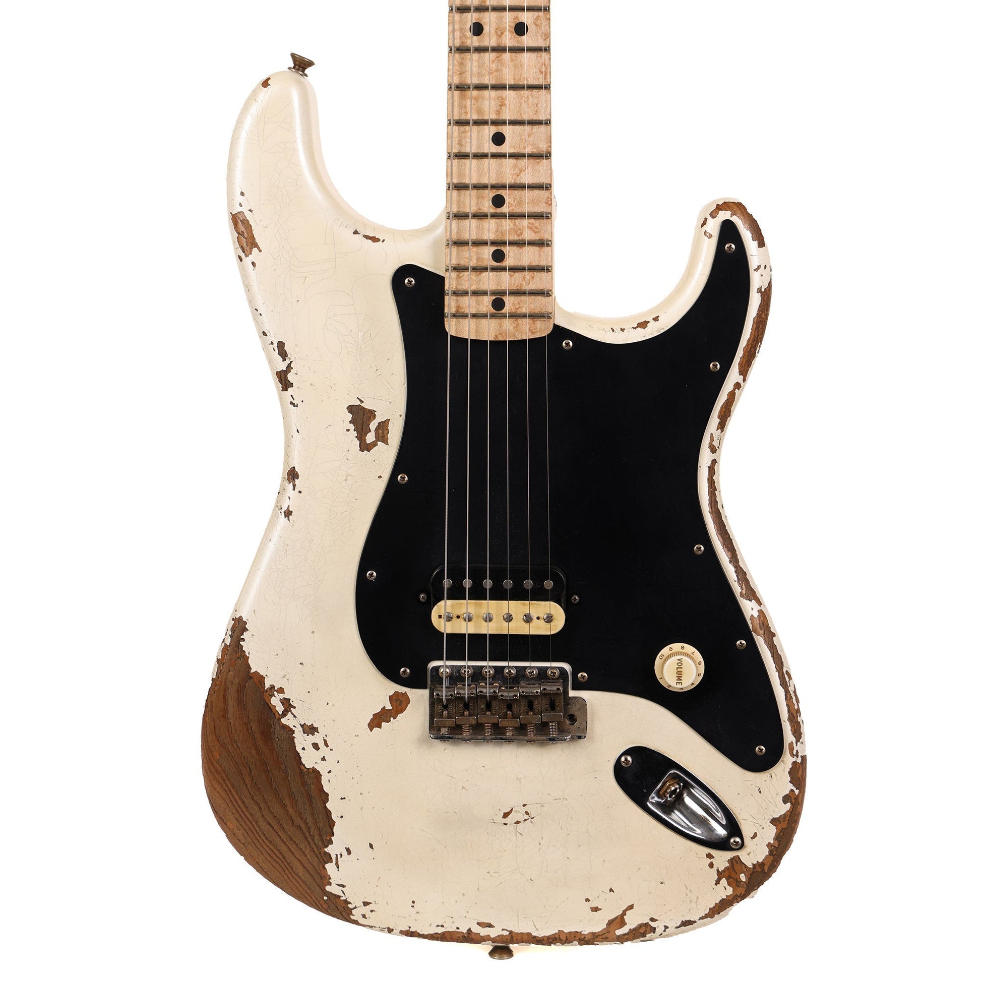 Originally spec'd and sold by The Music Zoo, this is a 2023 Andy Hicks Masterbuilt '69-style Strat. Features include a large headstock shape and logo with a single Duncan Super '78 humbucker, brass nut and incredible Heavy Relic Frost White finish. Simple and effective, this guitar is so much fun to play. This lightweight (6 lbs, 13 oz.) Masterbuilt Strat is in all-original shape with the case, COA and case candy included.