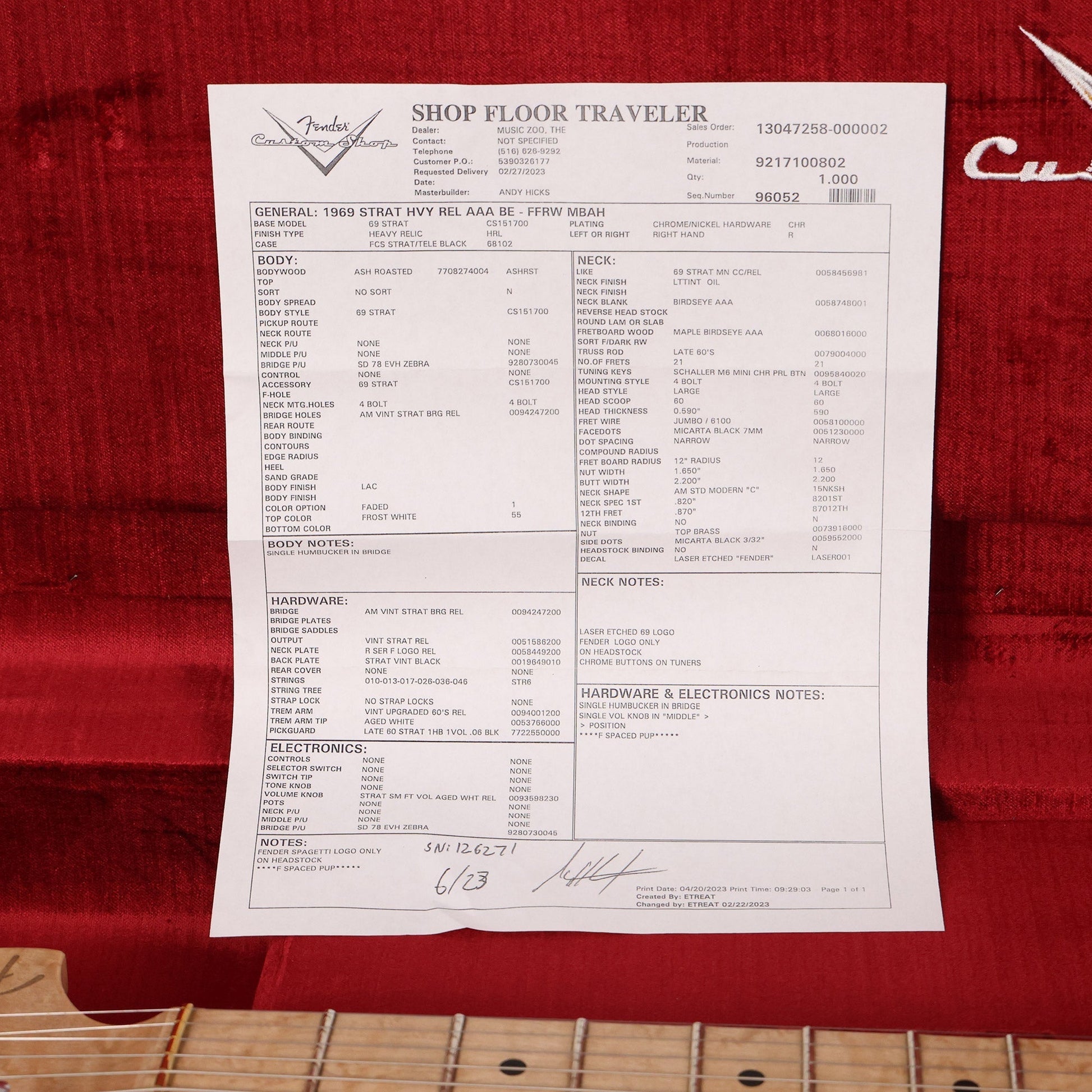 Fender Custom Shop 1969 Stratocaster Masterbuilt Andy Hicks Heavy Relic Frost White 2023