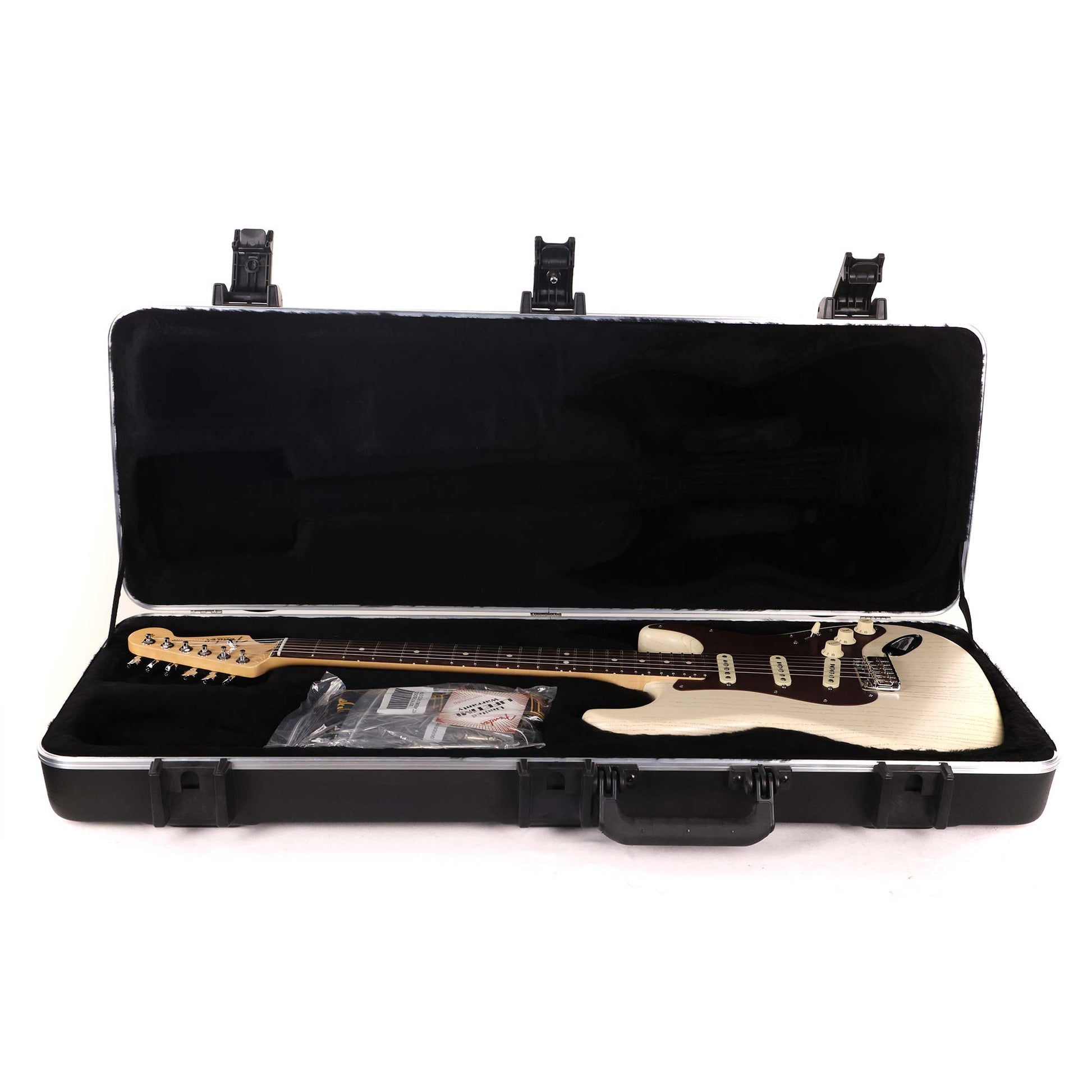 Here's a 2013 American Standard with a satin Olympic White finish and an ash body. This guitar was part of a FSR (Factory Special Run) and features a rosewood fretboard and three Custom Shop Texas Special Strat pickups. It's still in excellent condition - the protective sticker is still over the tremolo arm screw hole! The original case is included with this one.