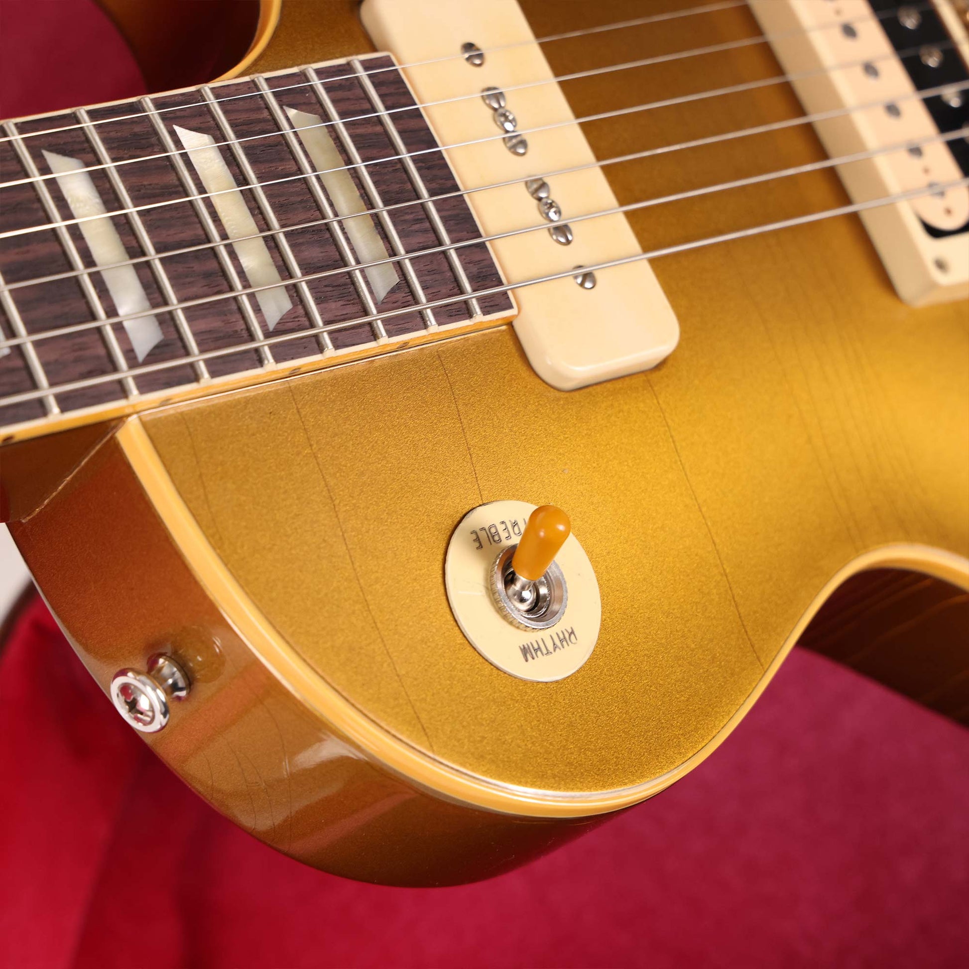 Easily one of our favorite Made 2 Measure ideas ever...made even better by an awesome all-gold finish and an Ultra Light Aged treatment by the Murphy Lab! It's a VOS '54 Les Paul Standard outfitted with a zebra bobbin Custombucker in the bridge - we nicknamed this one the '54 Wraparound Rocker! The perfect guitar for searing lead tones when you have the bridge pickup engaged and of course, the soapbar P-90 is in the back to get super thick rhythm sounds. Combine the two and adjust the volumes to taste for even more possibilities.