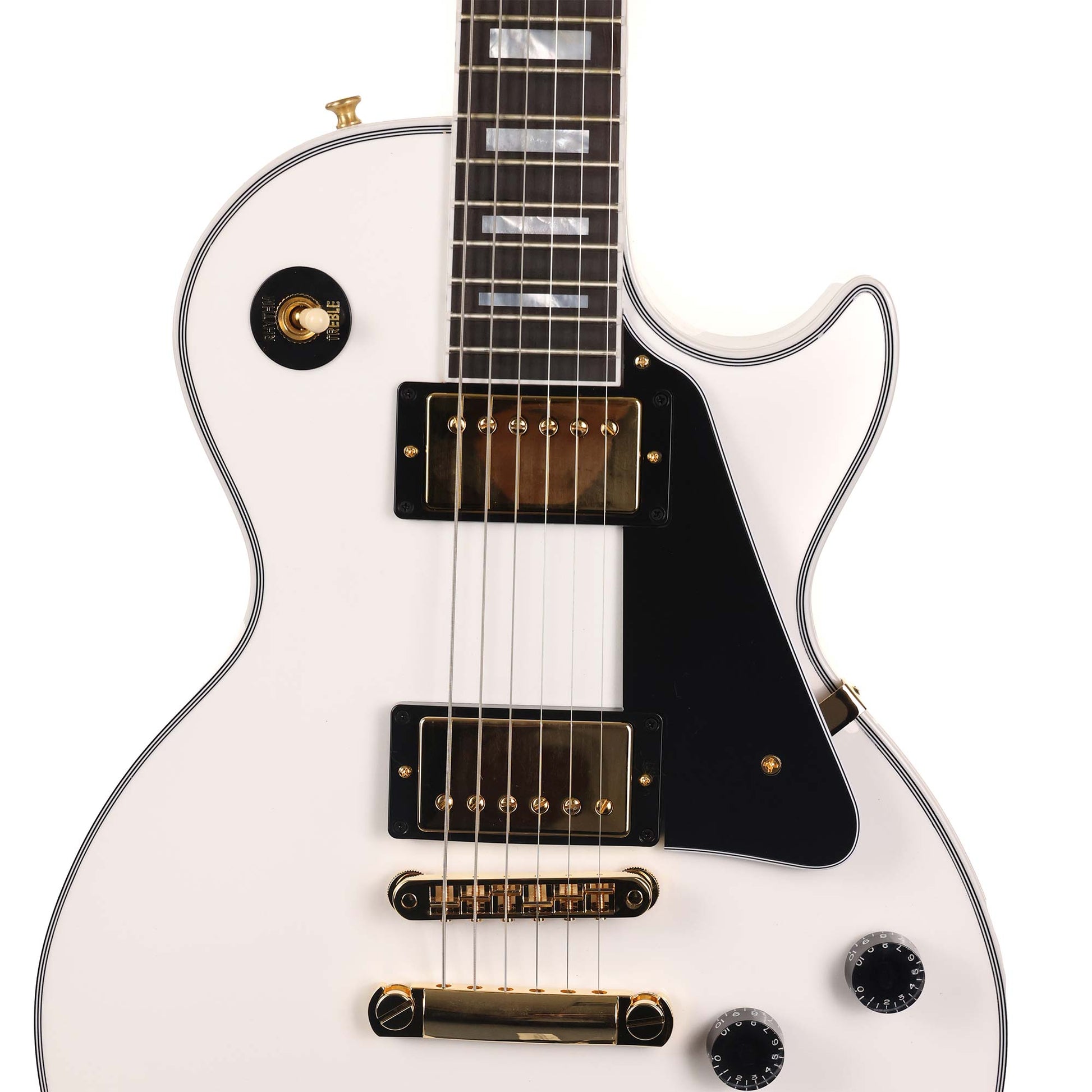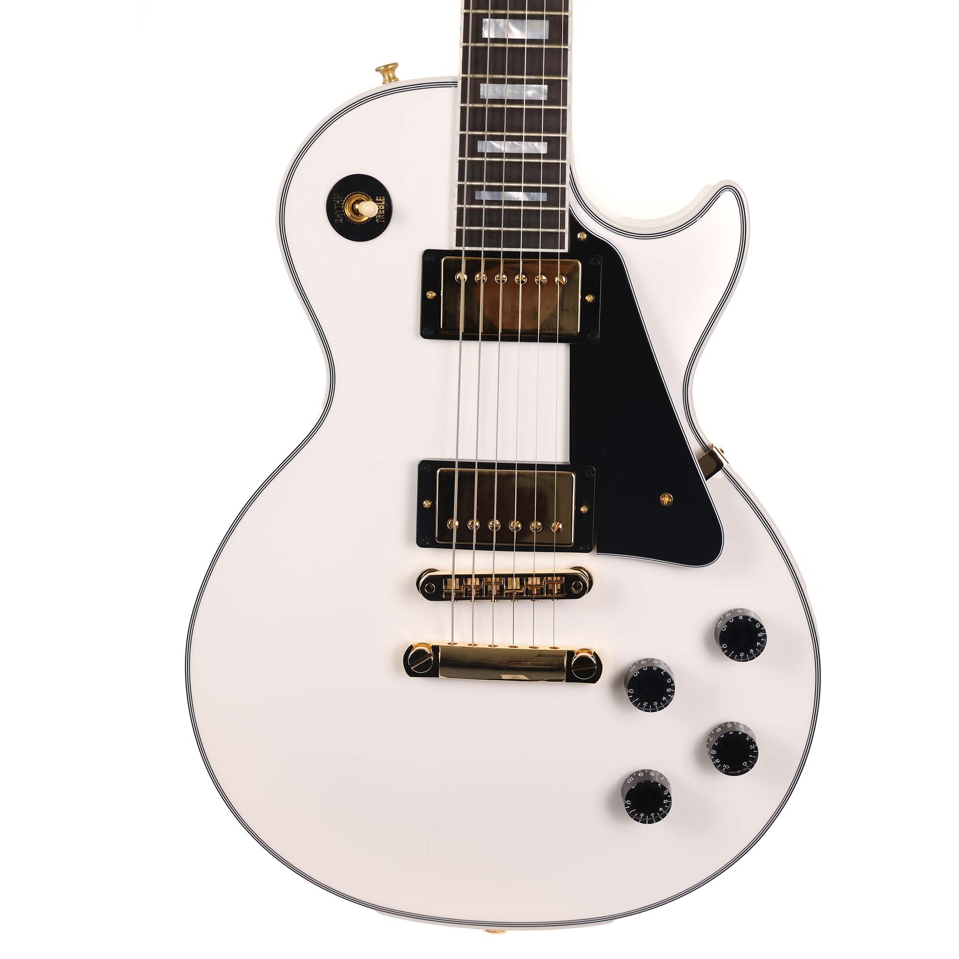 Nothing beats the crisp looks of an Alpine White Les Paul Custom! Built by the top of the line Gibson Custom Shop, the Les Paul Custom features a solid ebony fretboard, multi-ply binding, and two modern sonding 490R and 498T humbucking pickups. The rounded neck profile is perfect for players who want a healthy medium, it's not a baseball bat nor is it a slim '60s Les Paul profile.