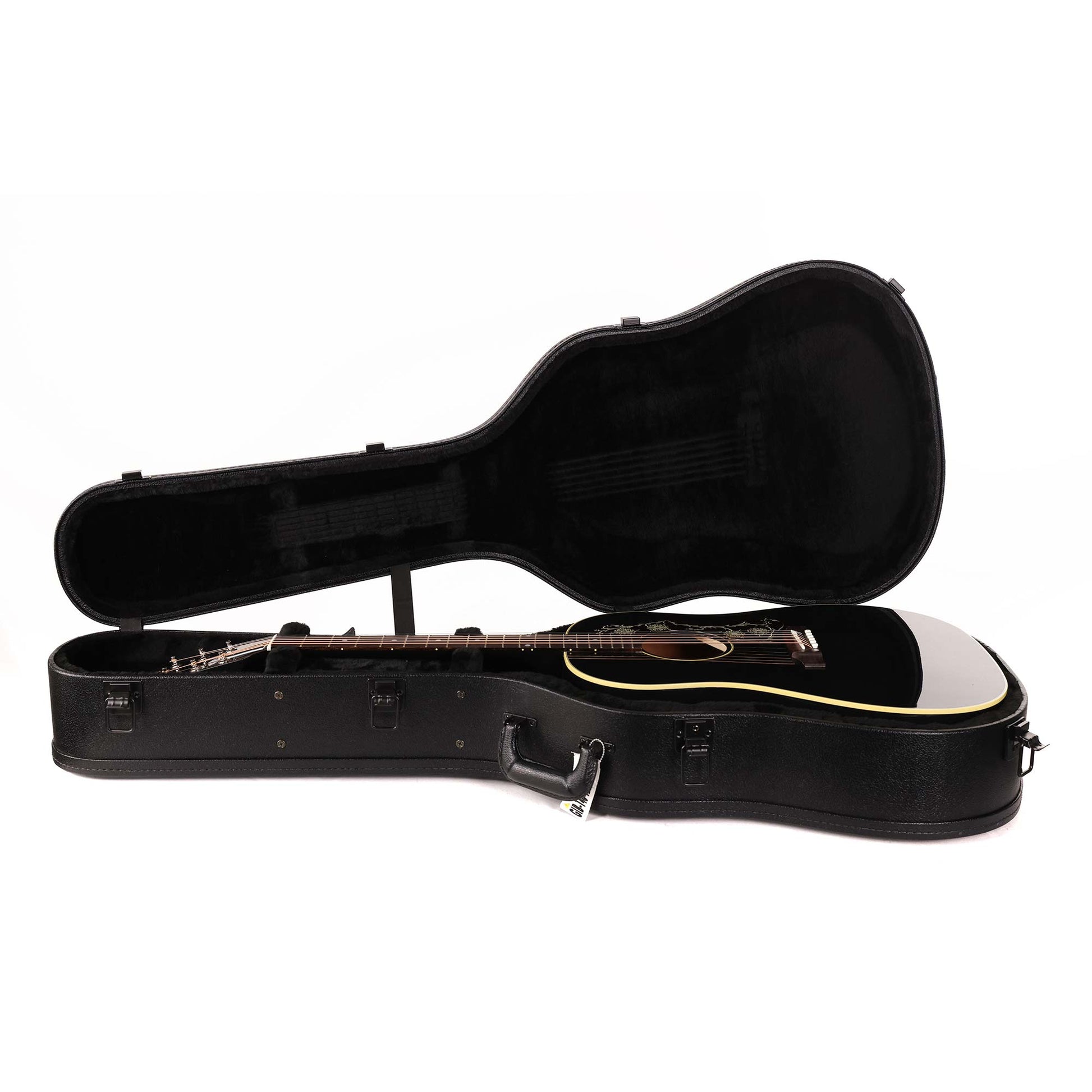 Even workhorse guitars can get dressed up once in a while! This is a Music Zoo Made 2 Measure J-45 that has been given an engraved pickguard with the design from the Emmylou Harris model, which is one of our favorites! We wanted to throw a nice suit on this one too, so it's finished in ebony! All of the other specs of the J-45 Standard are here including the SlimTaper mahogany neck, mother of pearl dot inlays and the L.R. Baggs VTC electronics system! If you want J-45 tone with a look that's different than the rest, pick up this J-45 'Ornate'!