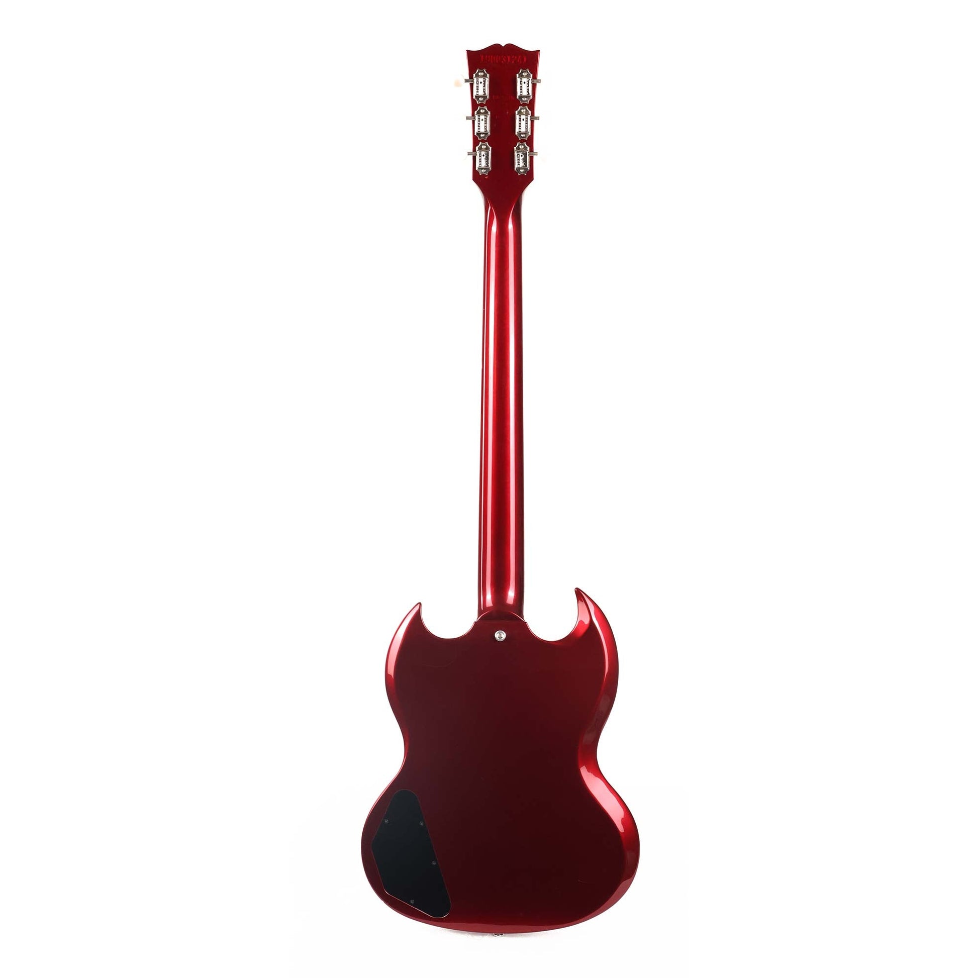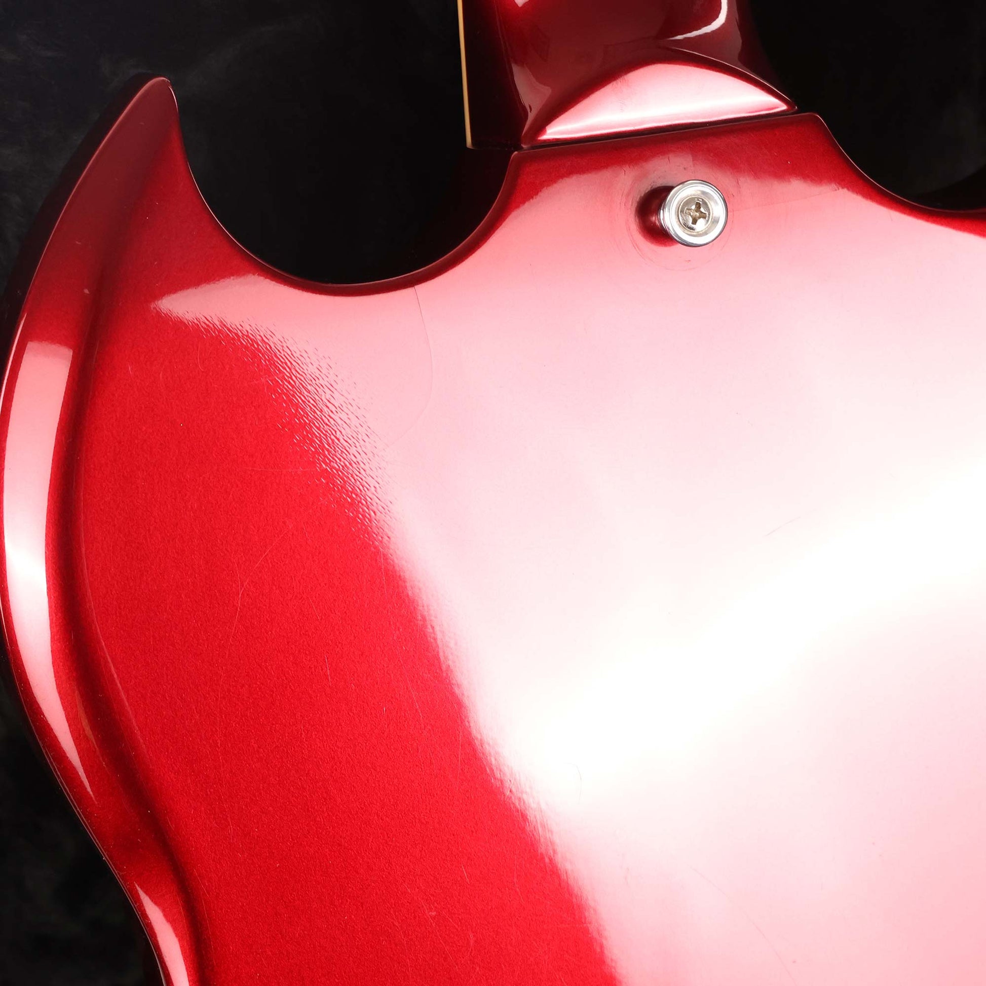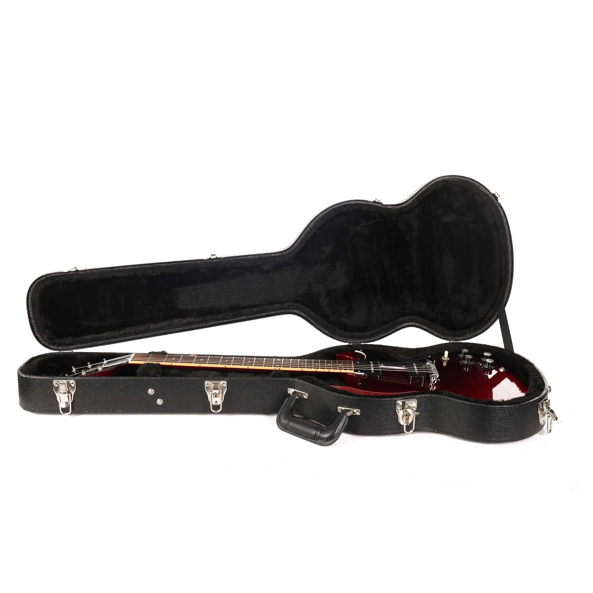 Here's a great looking Gibson USA SG - a Special with a Vintage Sparkling Burgundy finish that looks great with the black plastics and nickel hardware. The guitar has a SlimTaper neck profile and two soapbar P-90s to provide the sound. This SG has light playwear throughout the body including finish checking and scratches on the pickguard. The original hardshell case is included.