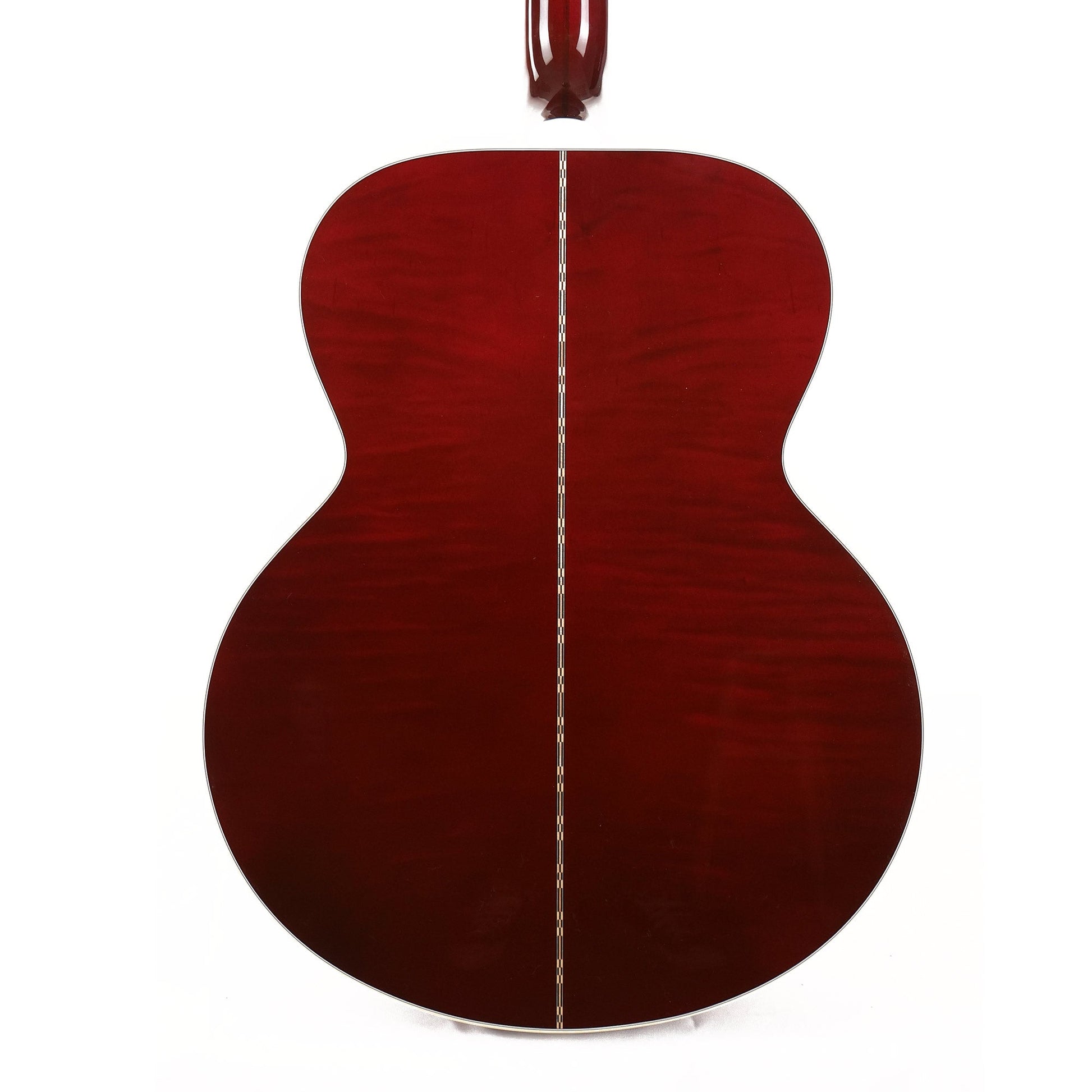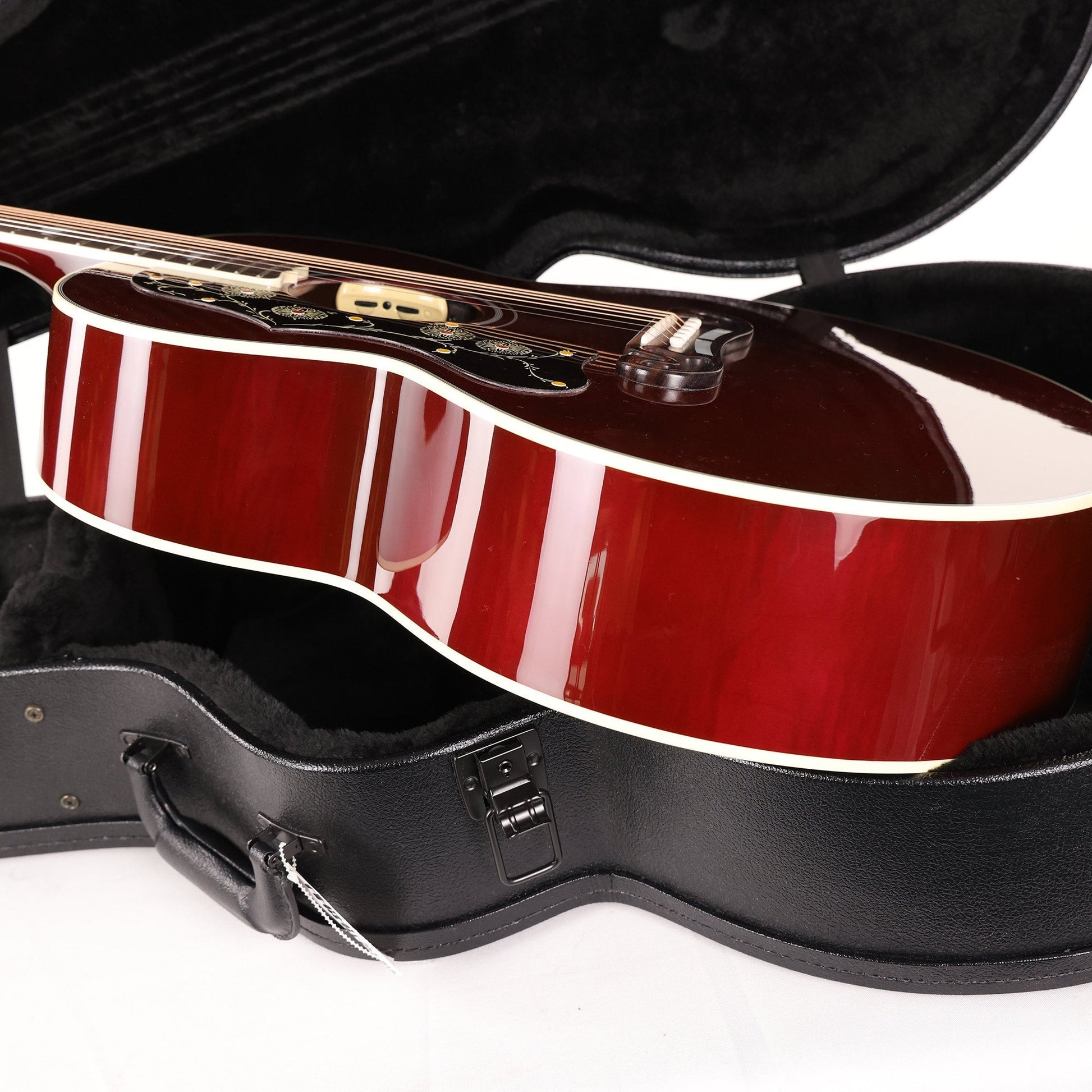 A classy acoustic for sure, this is a Gibson SJ-200 model with a beautiful Wine Red finish and built for left-handed playersIncludes: Hardshell Case and Paperwork. Built with a maple back and sides as well as neck, the SJ-200 bears the marks of a classic. Used by everyone from the late-great Gram Parsons who churned out his own custom-brand of "Cosmic Country Music" right on down to the hard-hitting Rock and Roll of Pete Townshend, the SJ-200's list of diverse players exemplifies why it's still one of the most popular acoustic guitars to date!