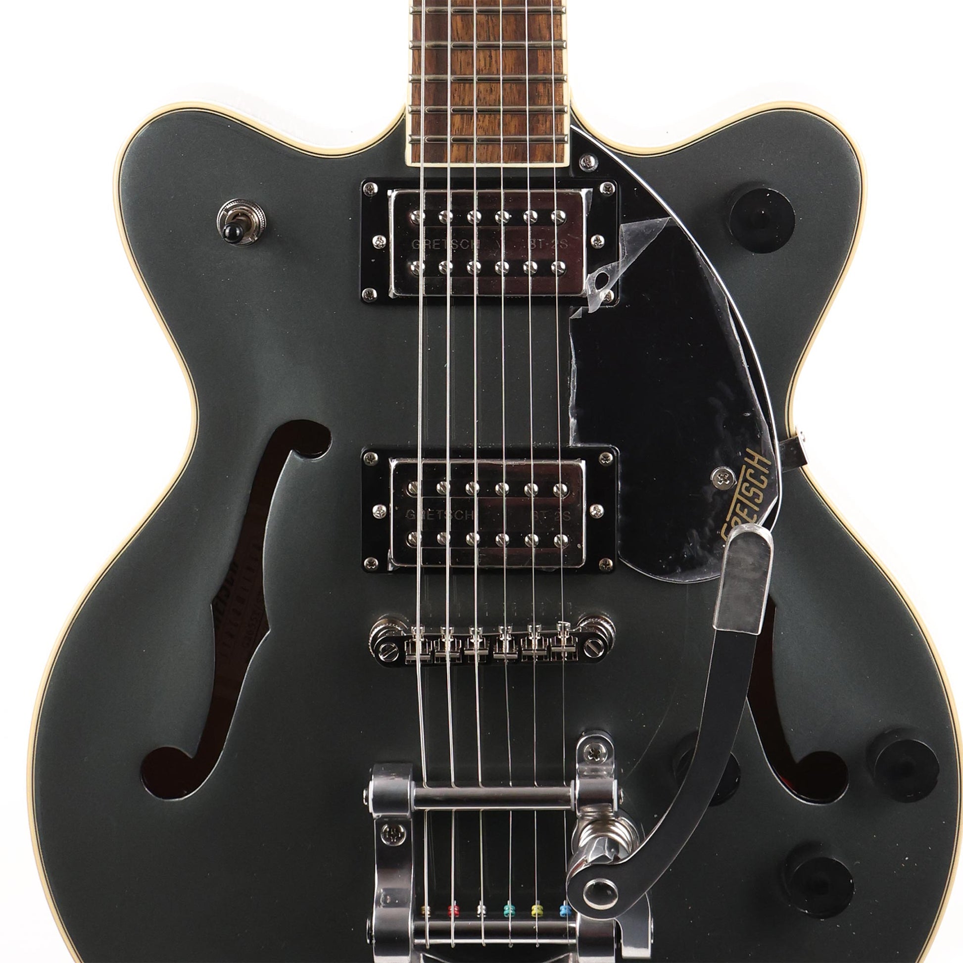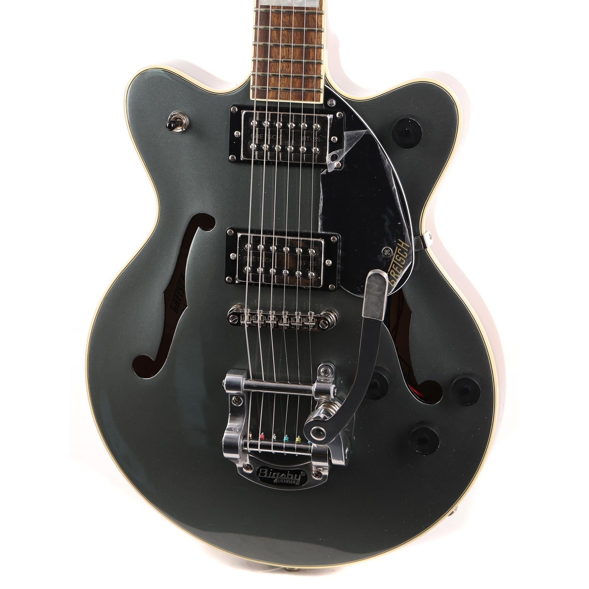 This is a lightly used and in overall excellent shape G2655T Streamliner Center Block Jr. Double-Cut from Gretsch. A sleek music machine, the G2655T cranks out the hits with updated features while staying true to That Great Gretsch Sound!™ that’s been a vital component of rock ‘n’ roll since its inception.The secret to the Streamliner’s sound is twofold—the Broad’Tron™ BT-2S humbucking pickup and the spruce center block. Designed specifically for the Streamliner Collection, the high-output Broad’Tron pickup spawns improved definition with tighter bass response for robust lows, pristine highs and a throaty midrange. A lightweight spruce center block runs the length of the body, reinforcing the top while eliminating undesired feedback for volume-friendly performance on modern stages.