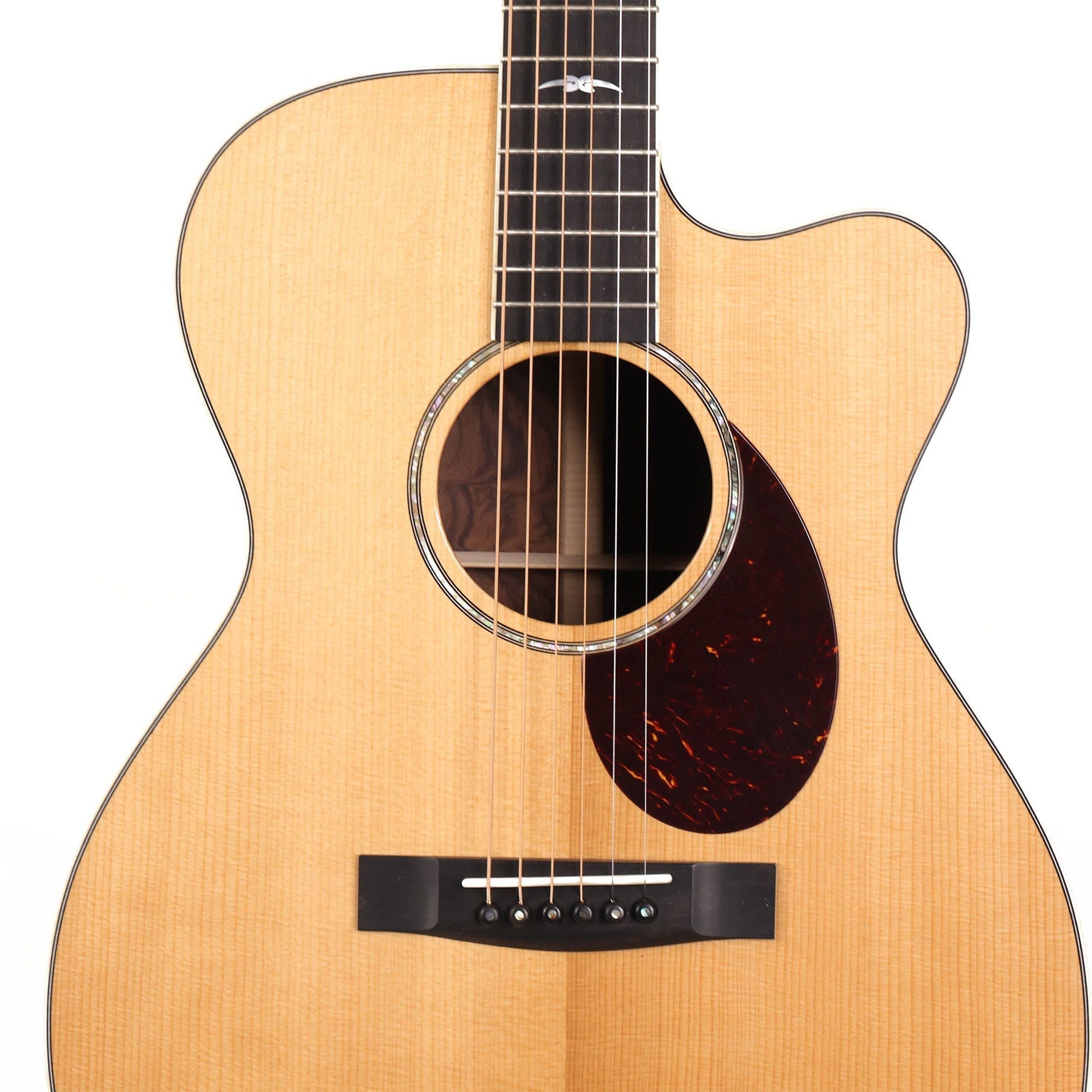 Here's a lightly used Huss & Daltom OM-C model which was custom-ordered with a thermo-cured red spruce top and 'wavy' Indian rosewood for the back and sides along with ivoroid body binding in lieu of the standard rosewood body binding. The OM-C features the traditional OM body shape but with a cutaway for easy upper fret access! The guitar is in overall excellent condition with just light playwear around the body - no dents or dings! The original case is included.