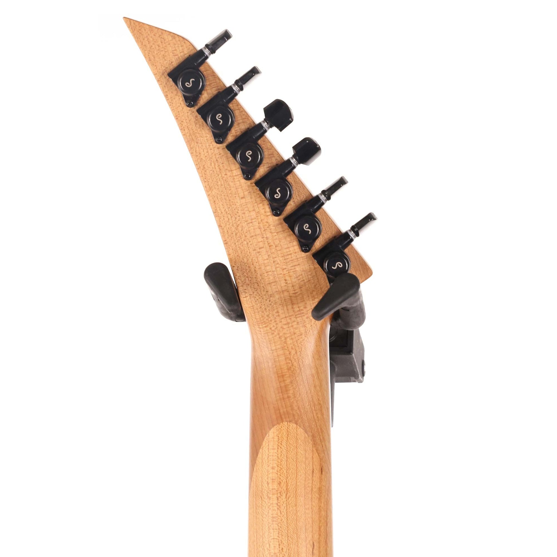 Love figured woods and the wild Jackson Rhoads shape? Then this is the axe for you! A Zoo-spec'd Custom Shop Rhoads in Amber Lager Burst built with a flame top over a mahogany body with a roasted maple neck-thru construction and a flame maple fretboard to match the top! The pickups are a versatile setup on this one: a Fender Custom Shop handwound Texas Special Strat single-coil in the neck with a DiMarzio Tone Zone in the bridge. There's a fixed bridge and V-plate tailpiece to keep the setup simple and straight ahead on this one.