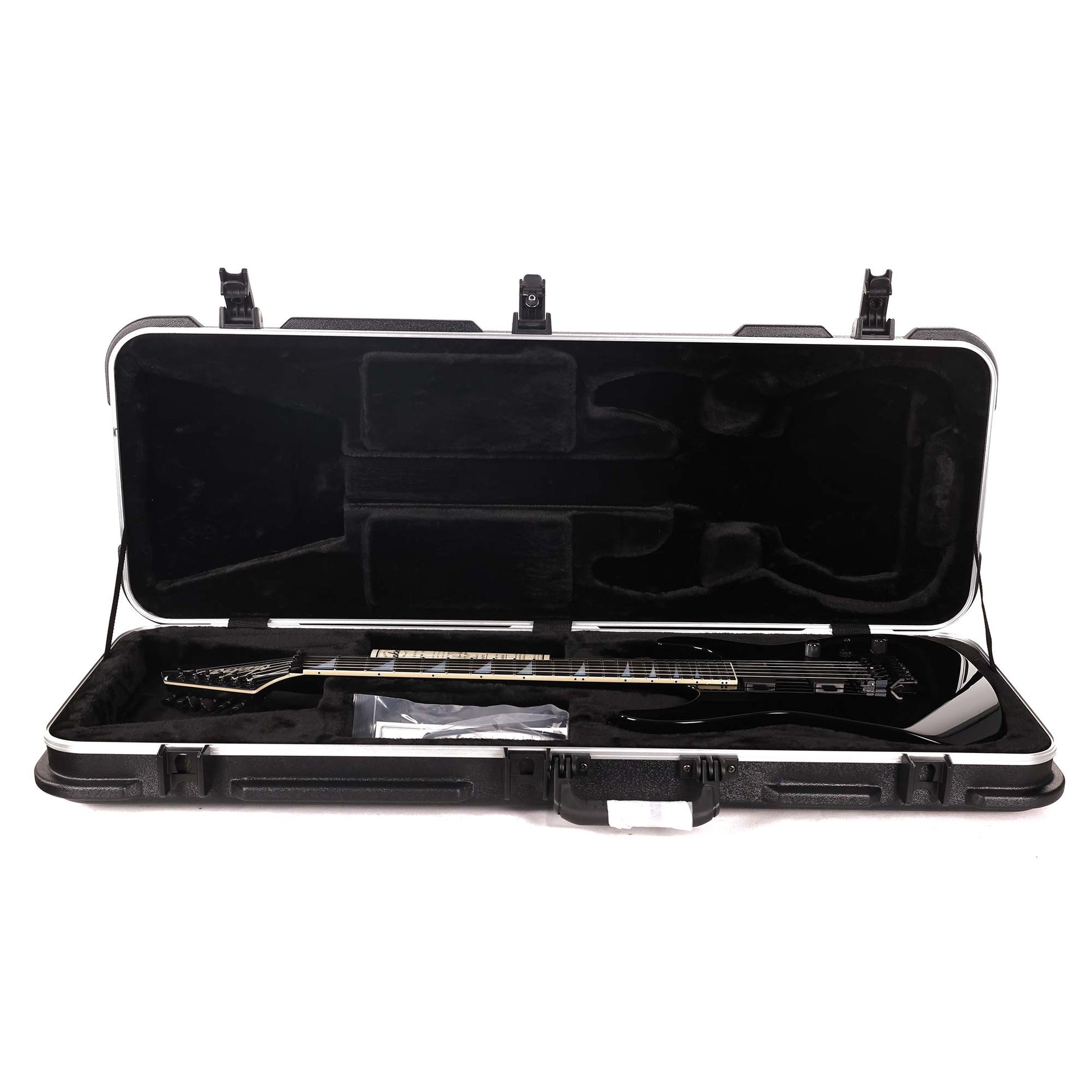 This is a lean and mean riff machine! A custom-ordered Jackson Custom Shop Soloist with an all-black finish, black hardware and two EMG active 81/85 humbuckers. There's a Floyd Rose Original for all your divebombing needs, and the simplest of embellishments to complete the look: only fretboard binding and Sharkfin inlays.