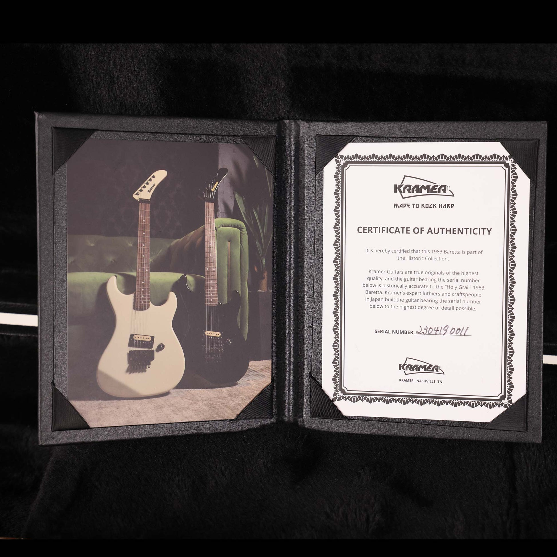 This is a Kramer that we have been excited about for a longtime! The Kramer 1983 Baretta Reissue that is made in Japan! The guitar is built with a maple body just like the originals, and features a slim neck profile that's also true to the originals. It features a rosewood fretboard with a flat 16" fretboard radius, a Seymour Duncan '59 bridge pickup with a reverse zebra bobbin look and a Floyd Rose Original tremolo system. It's the quintessential Hard Rock and '80s Metal guitar that's been brought back to life in all the right ways. Pick your 1983 Baretta Reissue at The Music Zoo today!