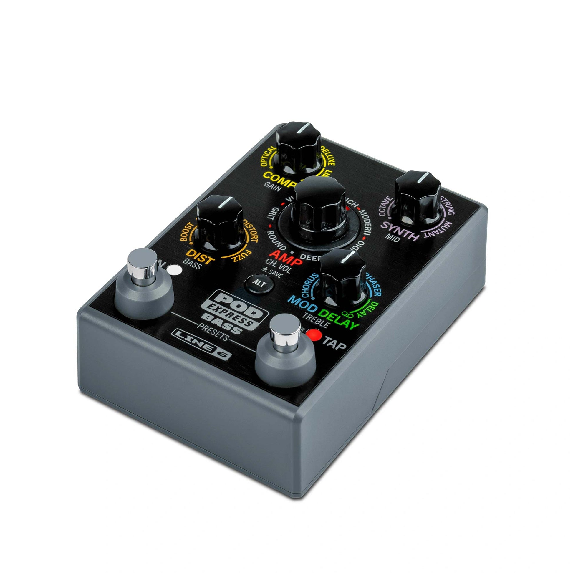 The POD® Express Bass is an ultra-portable bass amp and effects processor that enables bassists to take their tones wherever they choose. Simple controls make it easy to use, while models derived from the HX® family of processors ensure exceptional sound quality and authentic feel. POD Express Bass gives bassists seven amps, seven cabs, and 17 distortion, compression, synth, modulation, and delay effects—including a looper—and it may be powered by three AA batteries (included) or an optional 9-volt power supply!