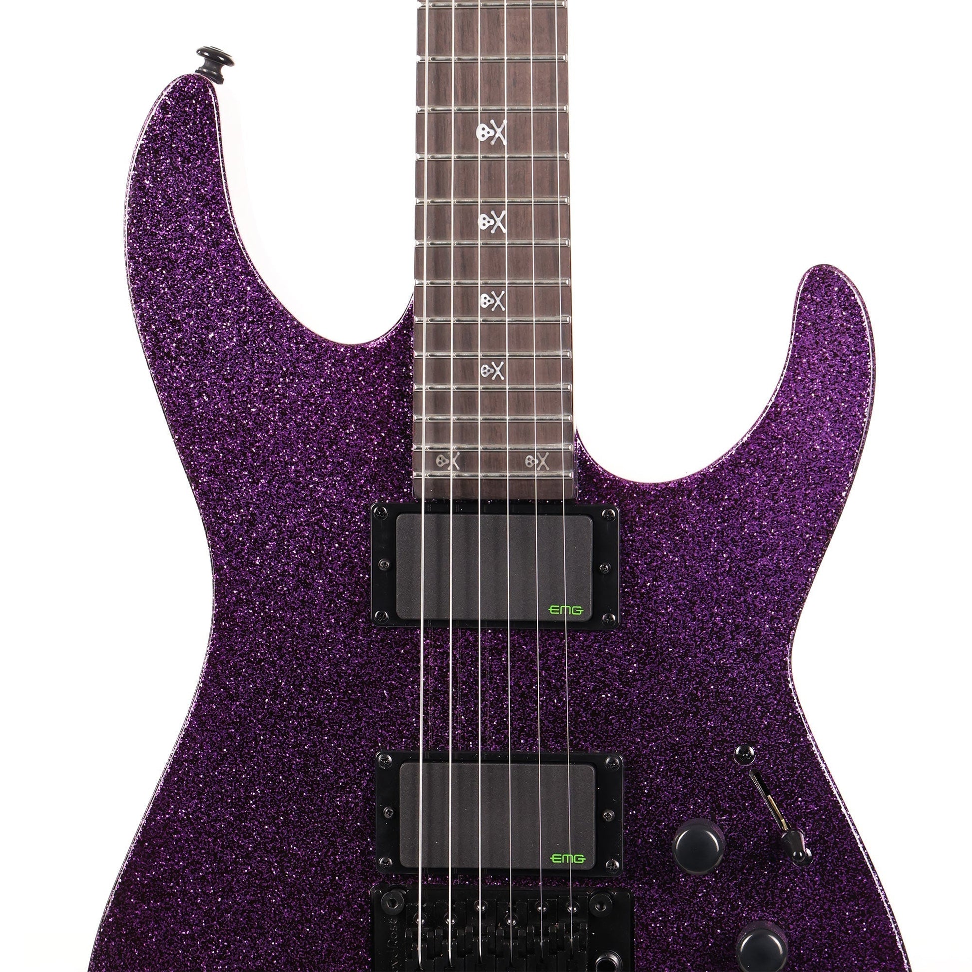 A classic workhorse Kirk Hammett signature from ESP LTD! This is the KH-602 guitar in a purple sparkle finish over a neck-through construction alder body and 3-piece maple neck with an ebony fretboard. Inlaid with skull and crossbones inlays and loaded with the Kirk Hammett signature Bone Crusher EMG pickups! Plug into your favorite wah and high gain amp and let those classic Metallica riffs fly off of your fingers!