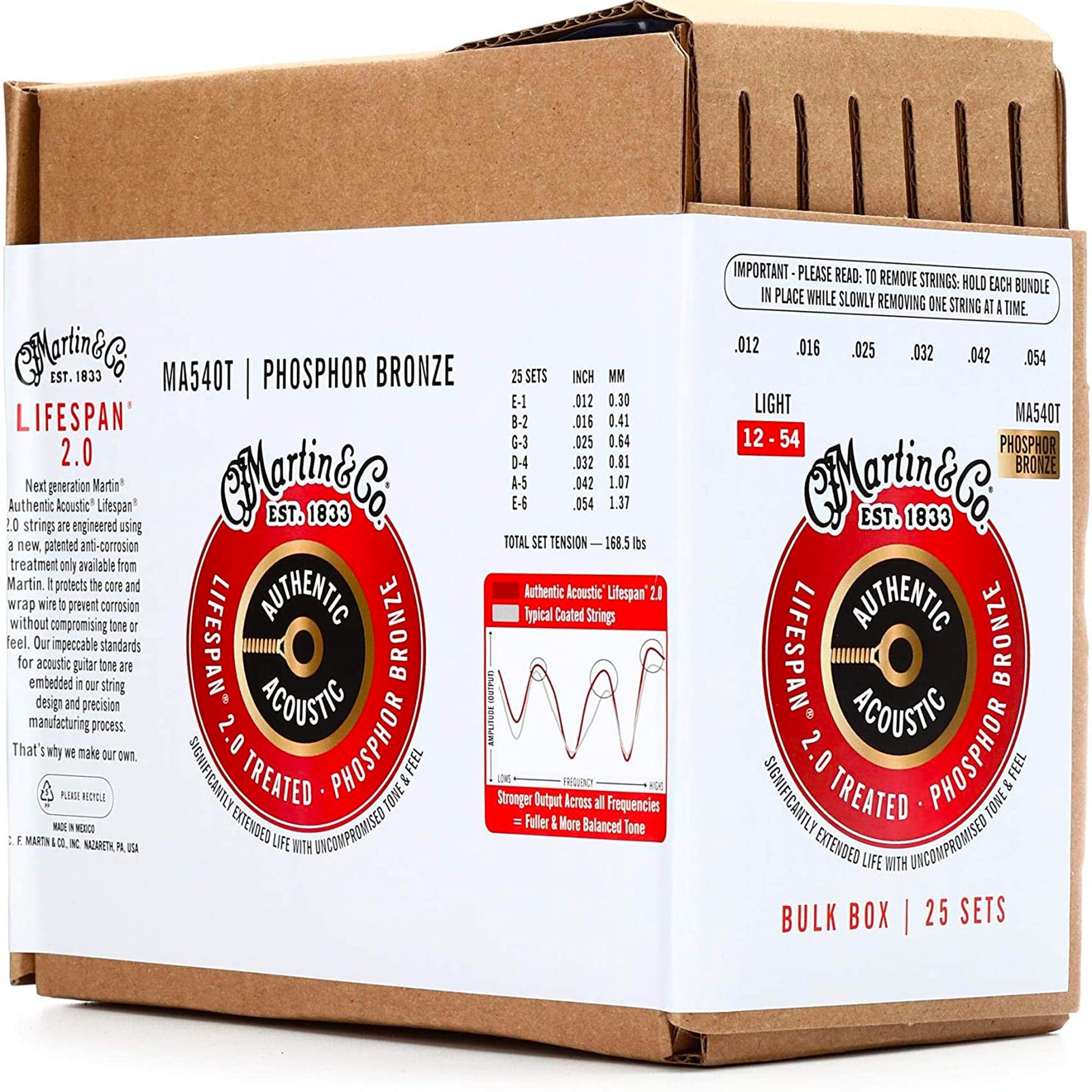 Martin MA540T Lifespan 2.0 Treated Acoustic Guitar Strings Phosphor Bronze Bulk Box 25-Pack 12-54