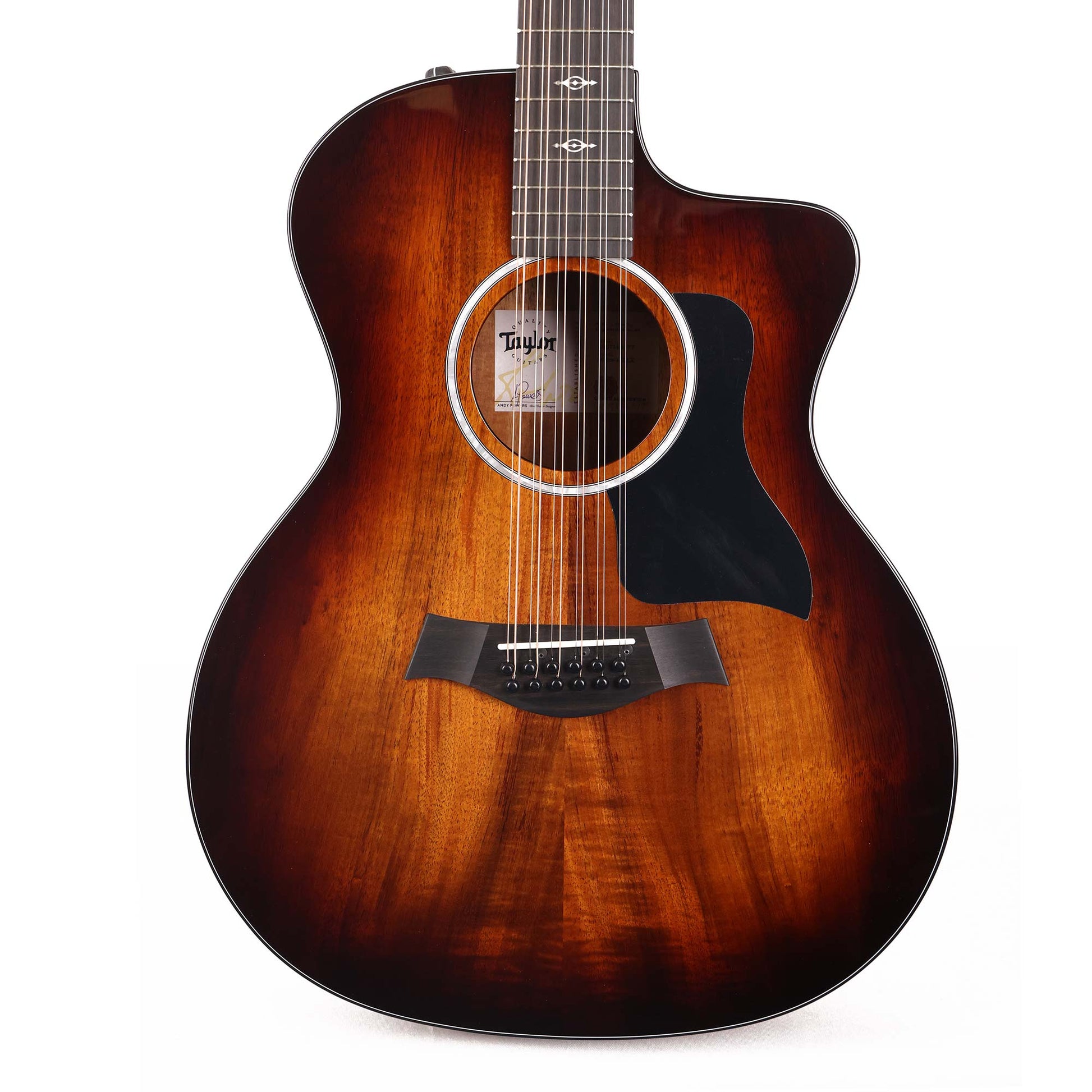 Bold koa looks and lush 12-string tones? We're in! This is the Taylor 264ce-K DLX all-koa Grand Auditorium wrapped up in the always gorgeous Shaded Edgeburst finish. Specs include a solid Hawaiian koa top with layered koa back and sides, black body binding, ES2 electronics and a single-ring faux pearl rosette. Pick this one up and stand out among the rest with a Taylor koa 12-string!