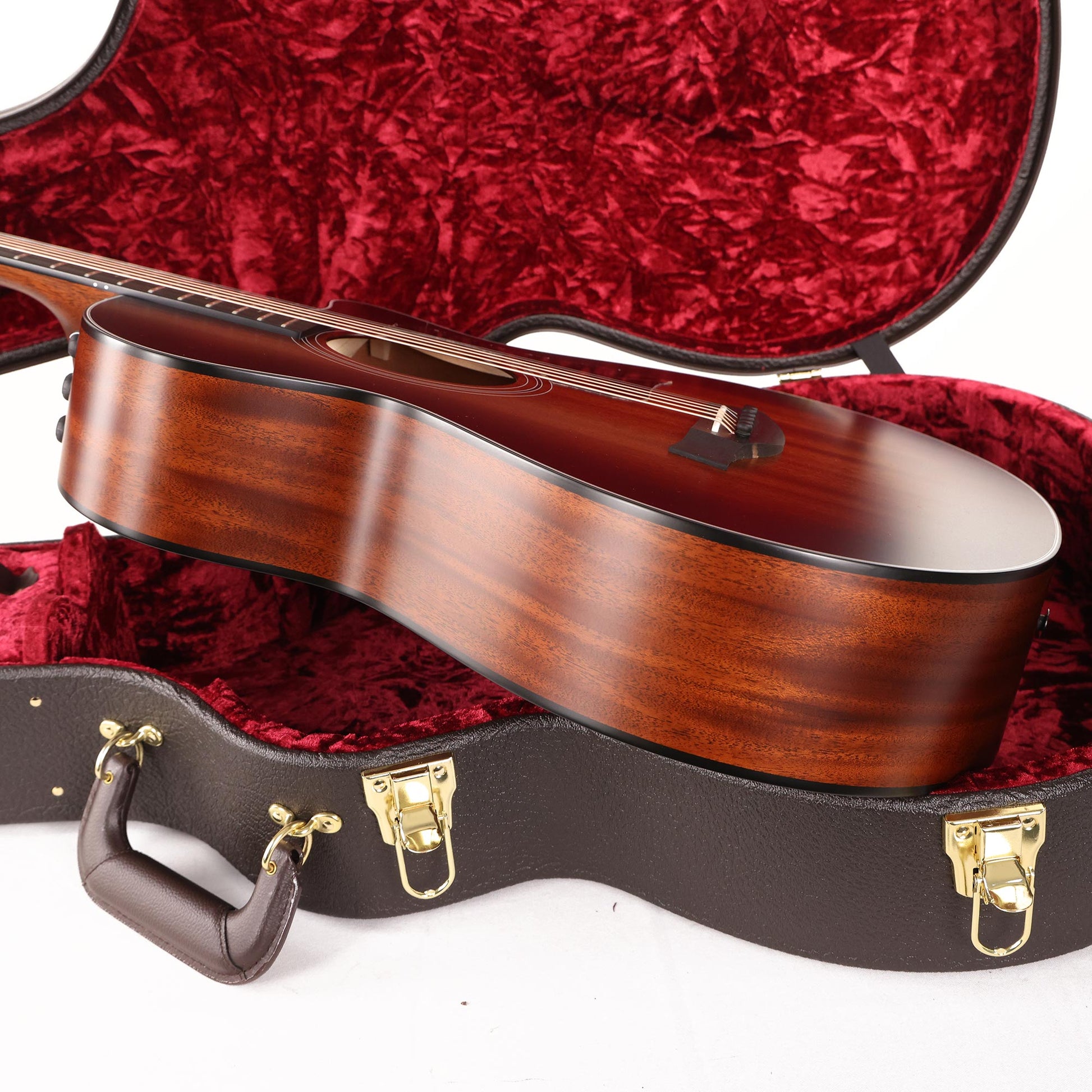 The warm, focused tone of Mahogany combines with small-bodied construction to produce this amazing 322ce. Perfect for fingerpickers looking for a comfortable instrument, the 322 features a short 24 7/8" scale and wide 1.75" nut width for a luxurious playing feel. The 12-fret construction places the bridge closer to the midpoint of the lower bout, producing an amazing projection that has to be heard to be believed - especially when paired with Taylor's V-Class bracing. The gorgeous Shaded Edgeburst top finish perfectly accentuates the Tropical Mahogany top, while the Tropical Mahogany back and sides are left natural to let the beautiful grain shine through. Taylor's Expression System 2 electronics ensure that great tone carries over when you plug in.