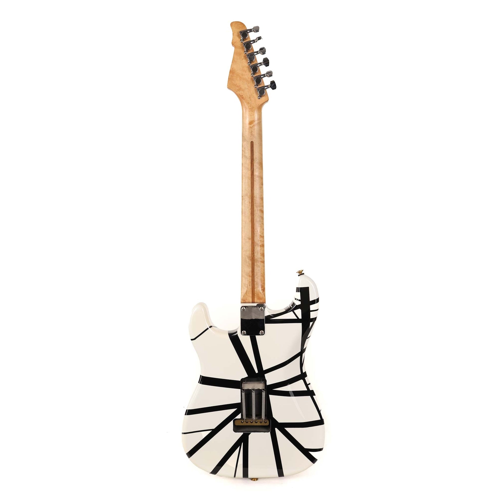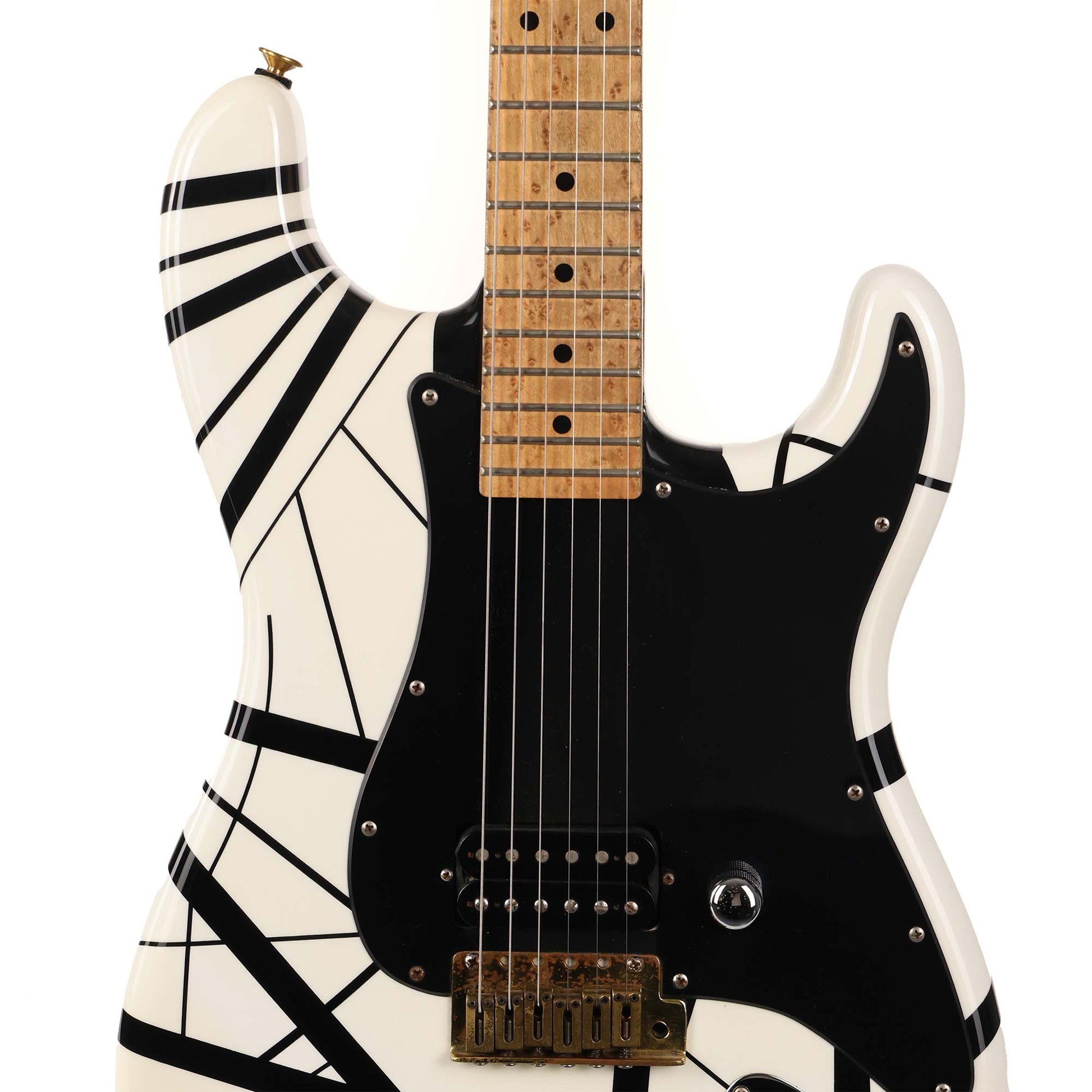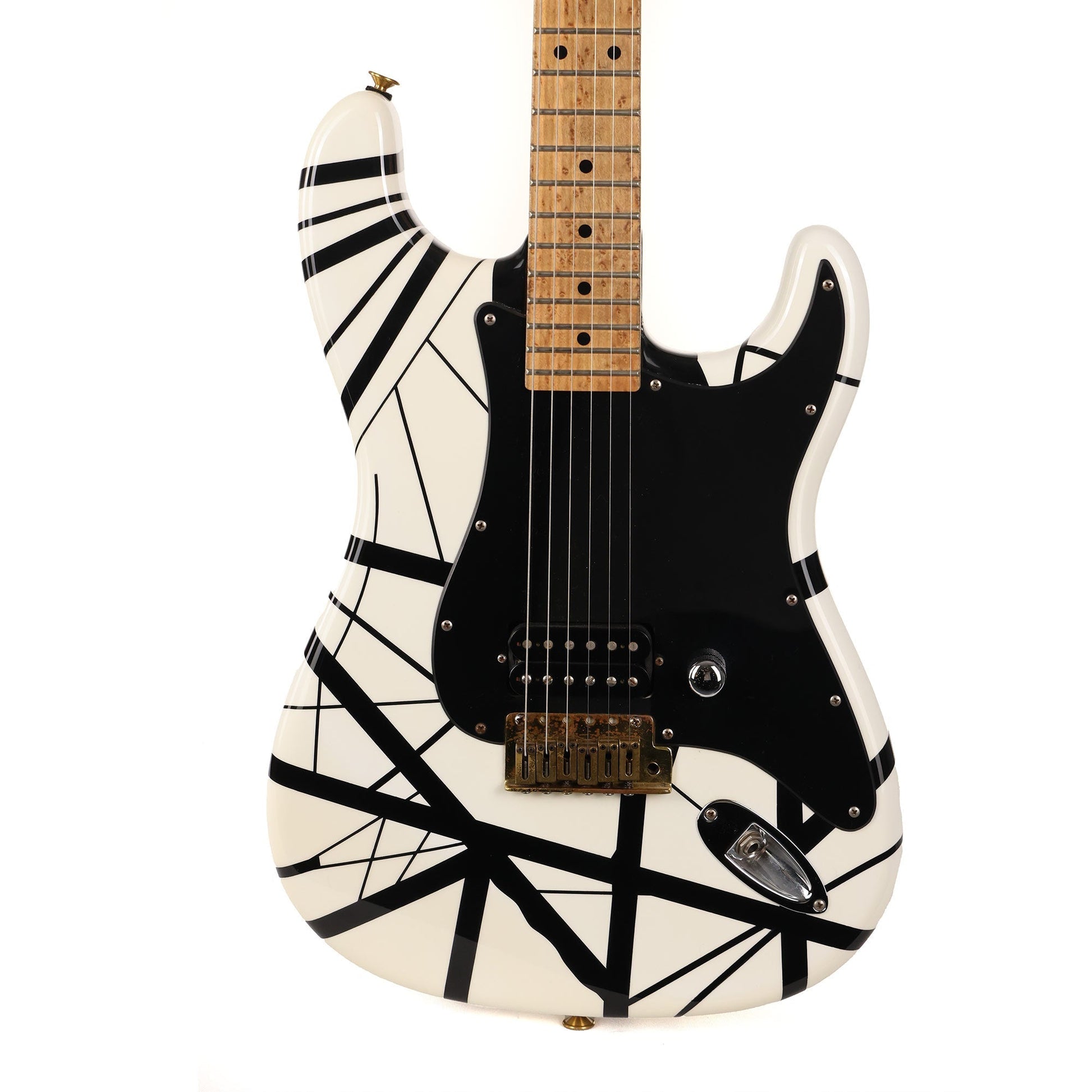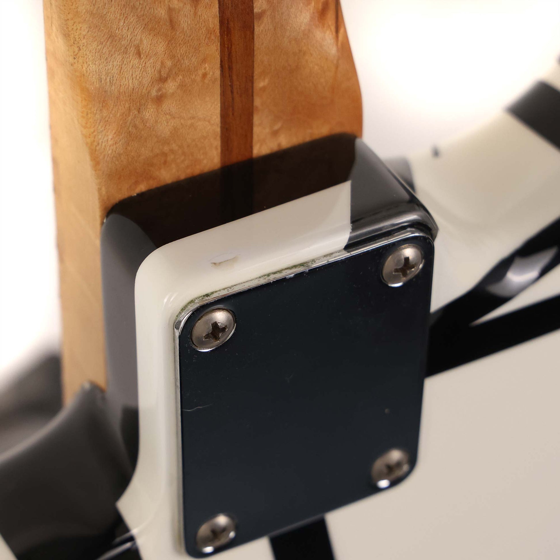 Harkening back to the earliest days of Charvel guitars, this is a very cool piece you're not going to find often. It's a Wayne 'Rock Legend' model with Black and White Stripes built in 2000 with a birdseye maple neck and (of course) a single humbucker pickup. The guitar has a six-point brass tremolo bridge with only the two end screws to pin the bridge down. The guitar remains in excellent condition with very little wear around the body, just some small dings around the neck pocket as pictured. The original case and tremolo arm are included with warranty paperwork from Wayne.