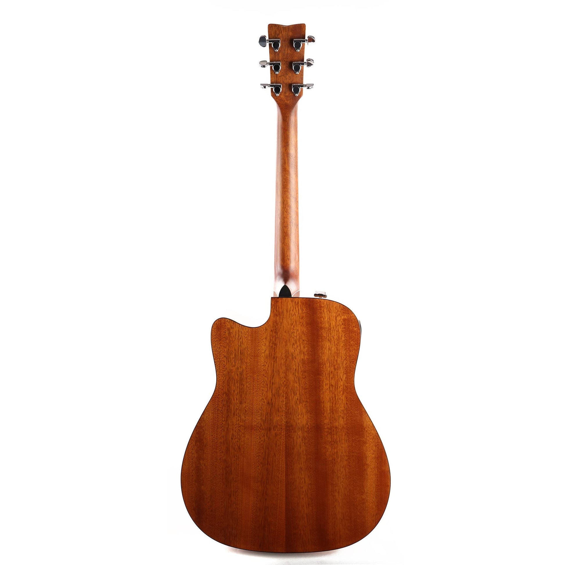 This is the Yamaha FGX800C, a dreadnought-sized acoustic-electric with a cutaway body, solid Sitka spruce top, nato back and sides to produce an instrument with a well-balanced tone that has lots of projection. Onboard electronics are there as well for easy plugging into an amplifier on stage!
