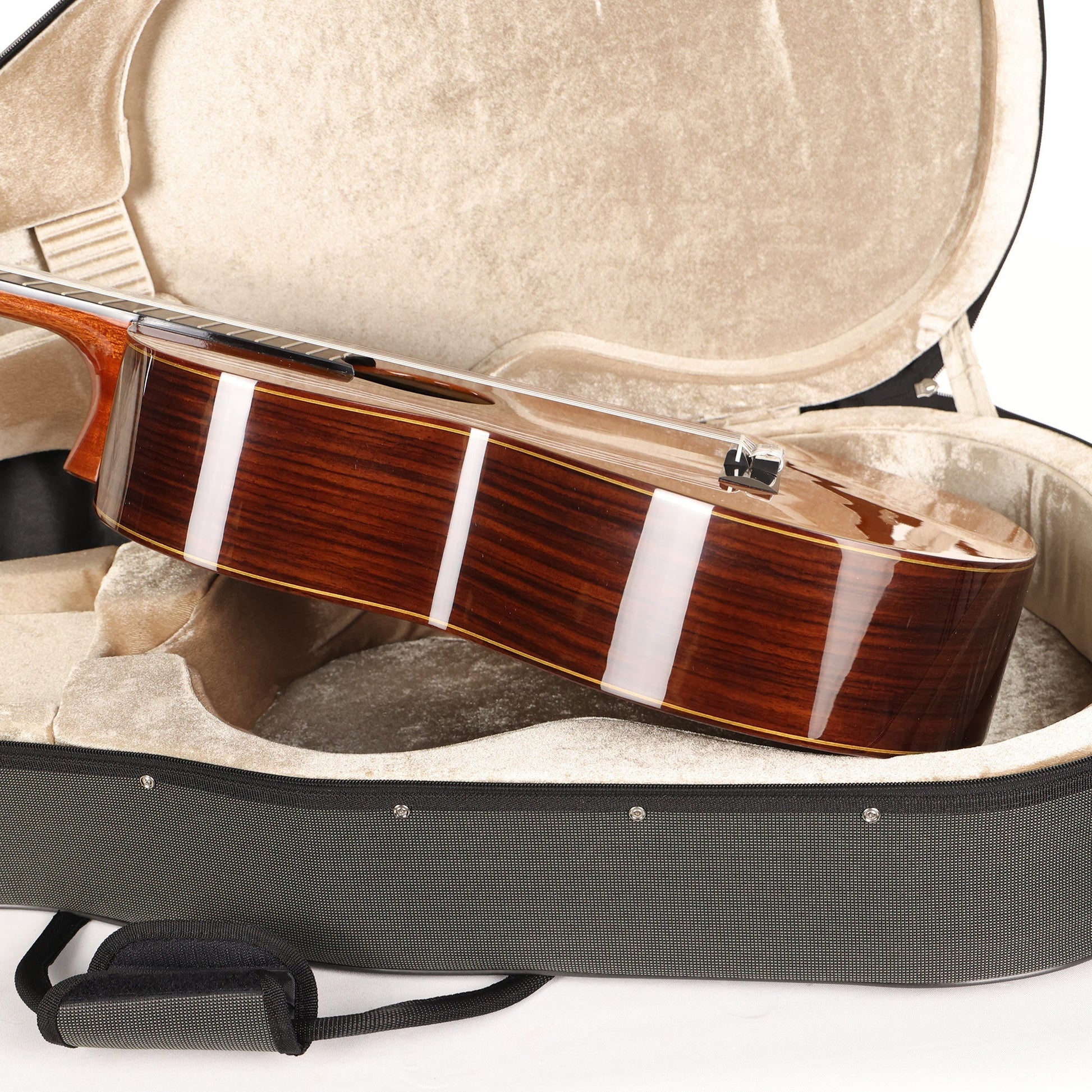 - Ebony Fretboard and Rosewood Bridge with Bone Saddle