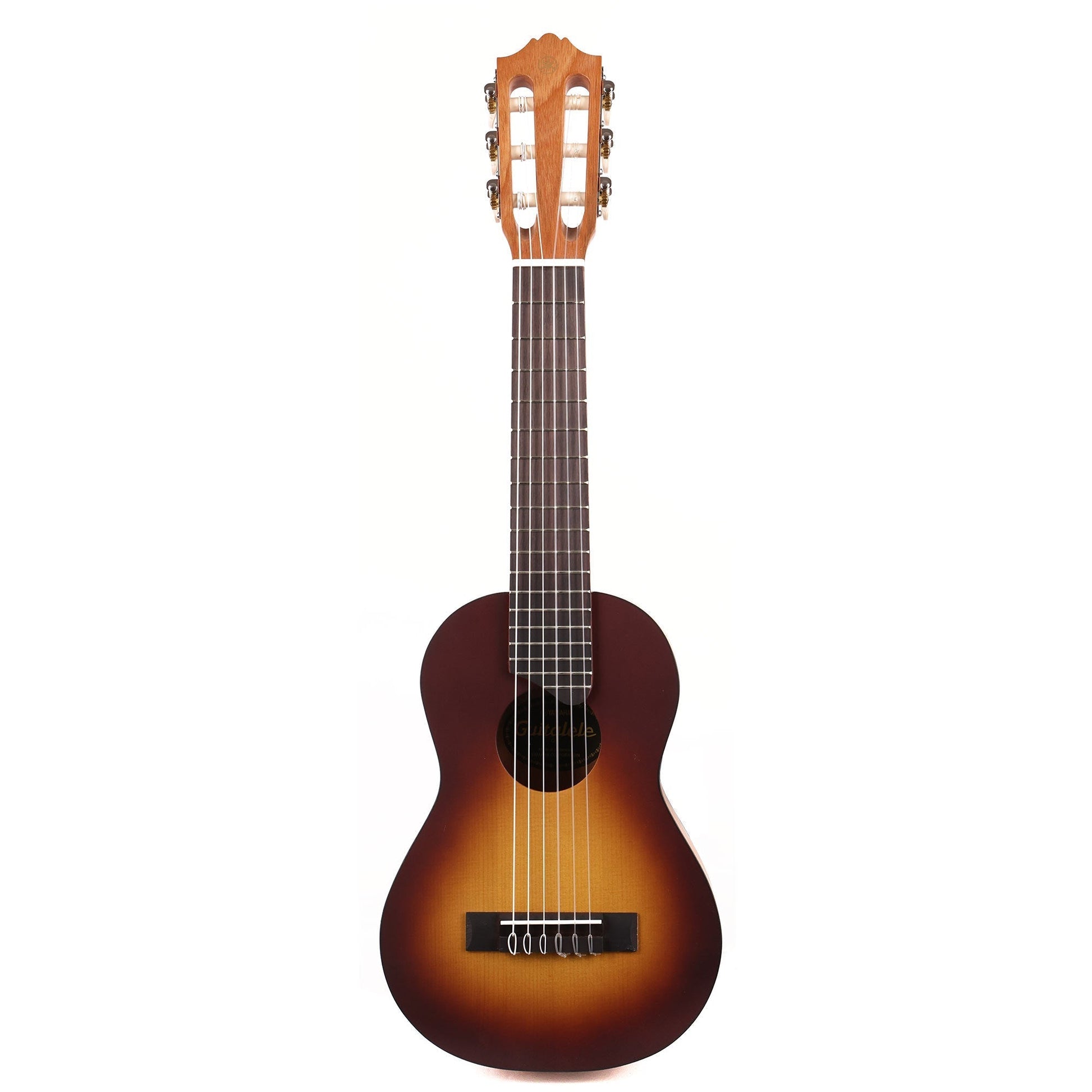 Tons of fun in a small package, this is the Yamaha GL1 guitar ukulele in a Tobacco Sunburst finish; exactly what it sounds like! It's a mini 6-string nylon guitar sized like a baritone ukulele (17" scale length) and is tuned up to A (ADGCEA).